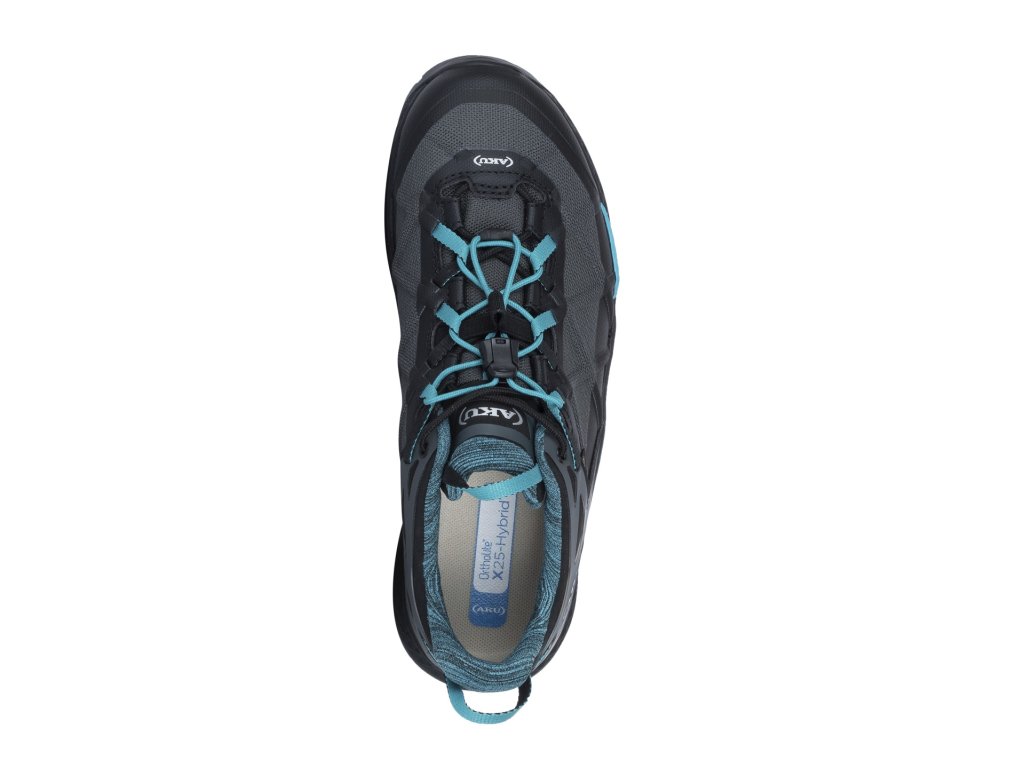Exkluzivní technologie AKU Dual Fit System (DFS), zde realizovaný ve verzi pro rychlostní turistiku, vám umožňuje měnit stupeň přesnosti padnutí pouhým působením dvou různých systému šněrování. Je vyroben s technologií AKU Elica Natural Stride System pro podporu biodynamiky.