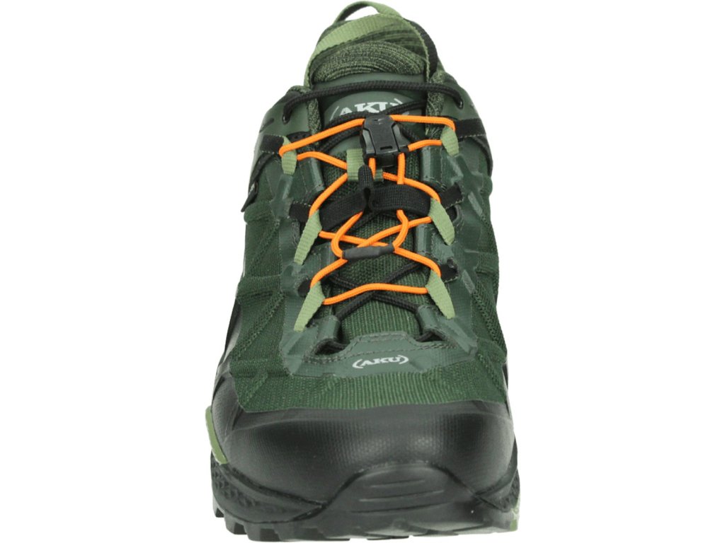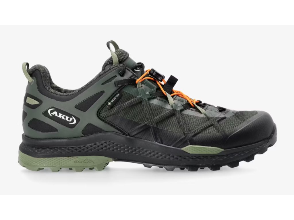 Exkluzivní technologie AKU Dual Fit System (DFS), zde realizovaný ve verzi pro rychlostní turistiku, vám umožňuje měnit stupeň přesnosti padnutí pouhým působením dvou různých systému šněrování. Je vyroben s technologií AKU Elica Natural Stride System pro podporu biodynamiky.