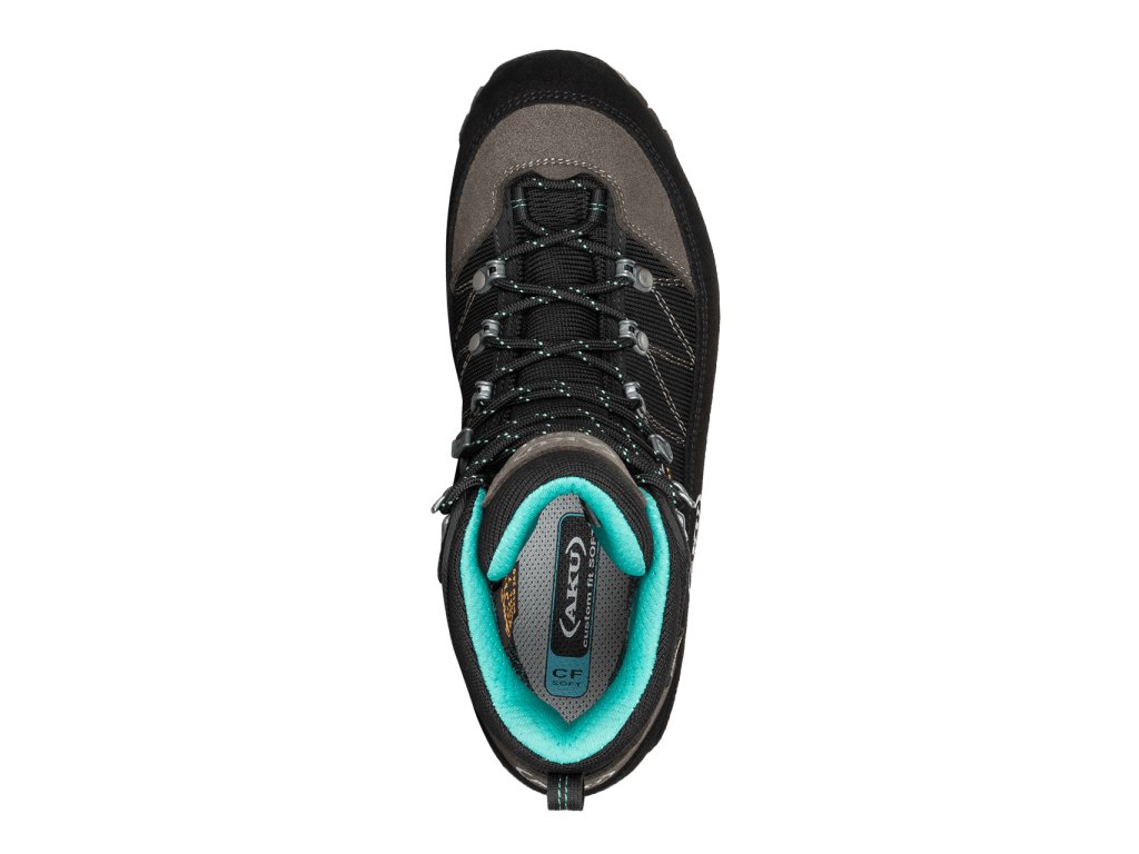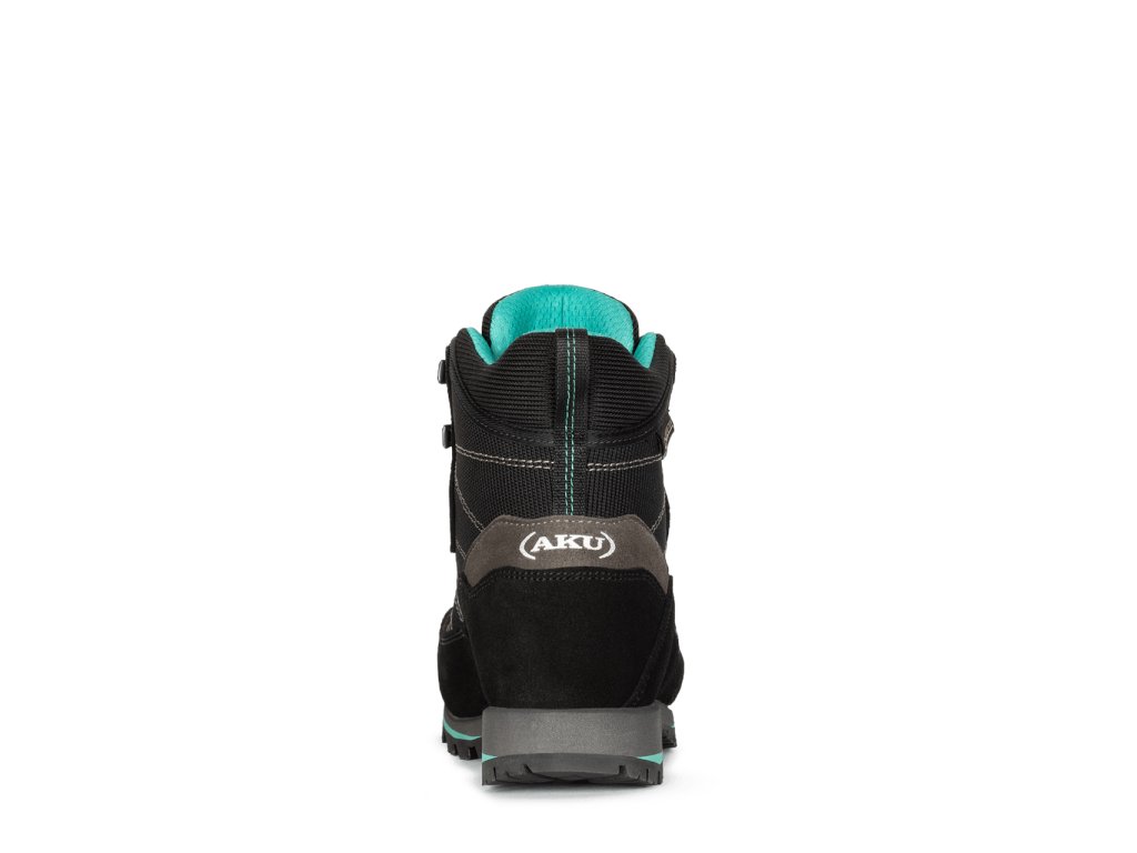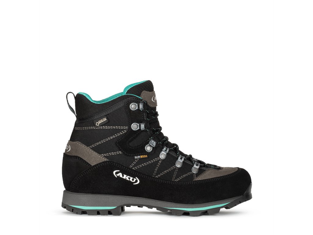 Svršek je vyroben z broušené kůže, která je 1,8 mm široká, v kombinaci s textilii AIR 8000 (vlastní technologie značky AKU zaručující až 11krát lepší prodyšnost oproti běžně používaným materiálům). Díky této kombinaci je bota mimořádně prodyšná a přitom pevná. Podšívku zajišťuje nepromokavá membrána Gore-Tex Performance Comfort a tak se v této botě nemusíte bát projít potokem či tajícím sněhem. O pohodlí při došlapu se stará mezipodešev EVA s dvojí hustotou pěny společně s tlumením IMS1, které vám dodá jistotu i v náročnějším terénu. Pohodlí a bezpečí také doplňuje nová semišová obsázka kolem celé boty. Špička je proti okopům o kameny či kořeny stromů zpevněná tvrdou gumou. O jistý záběr je zde postaráno díky podešvi VIBRAM Curcuma, která je exkluzivní pouze pro firmu AKU.
