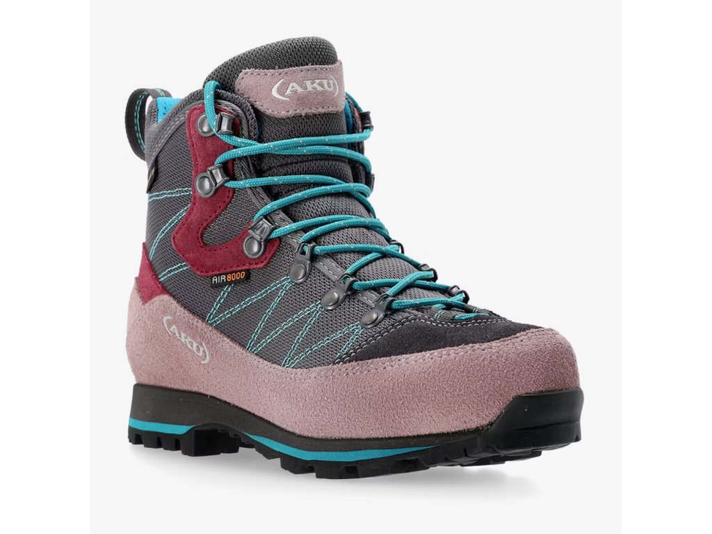 Svršek je vyroben z broušené kůže, která je 1,8 mm široká, v kombinaci s textilii AIR 8000 (vlastní technologie značky AKU zaručující až 11krát lepší prodyšnost oproti běžně používaným materiálům). Díky této kombinaci je bota mimořádně prodyšná a přitom pevná. Podšívku zajišťuje nepromokavá membrána Gore-Tex Performance Comfort a tak se v této botě nemusíte bát projít potokem či tajícím sněhem. O pohodlí při došlapu se stará mezipodešev EVA s dvojí hustotou pěny společně s tlumením IMS1, které vám dodá jistotu i v náročnějším terénu. Pohodlí a bezpečí také doplňuje nová semišová obsázka kolem celé boty. Špička je proti okopům o kameny či kořeny stromů zpevněná tvrdou gumou. O jistý záběr je zde postaráno díky podešvi VIBRAM Curcuma, která je exkluzivní pouze pro firmu AKU.