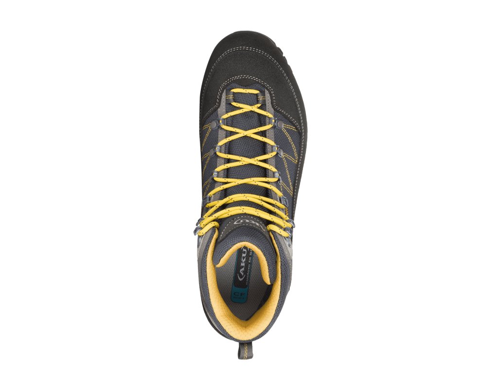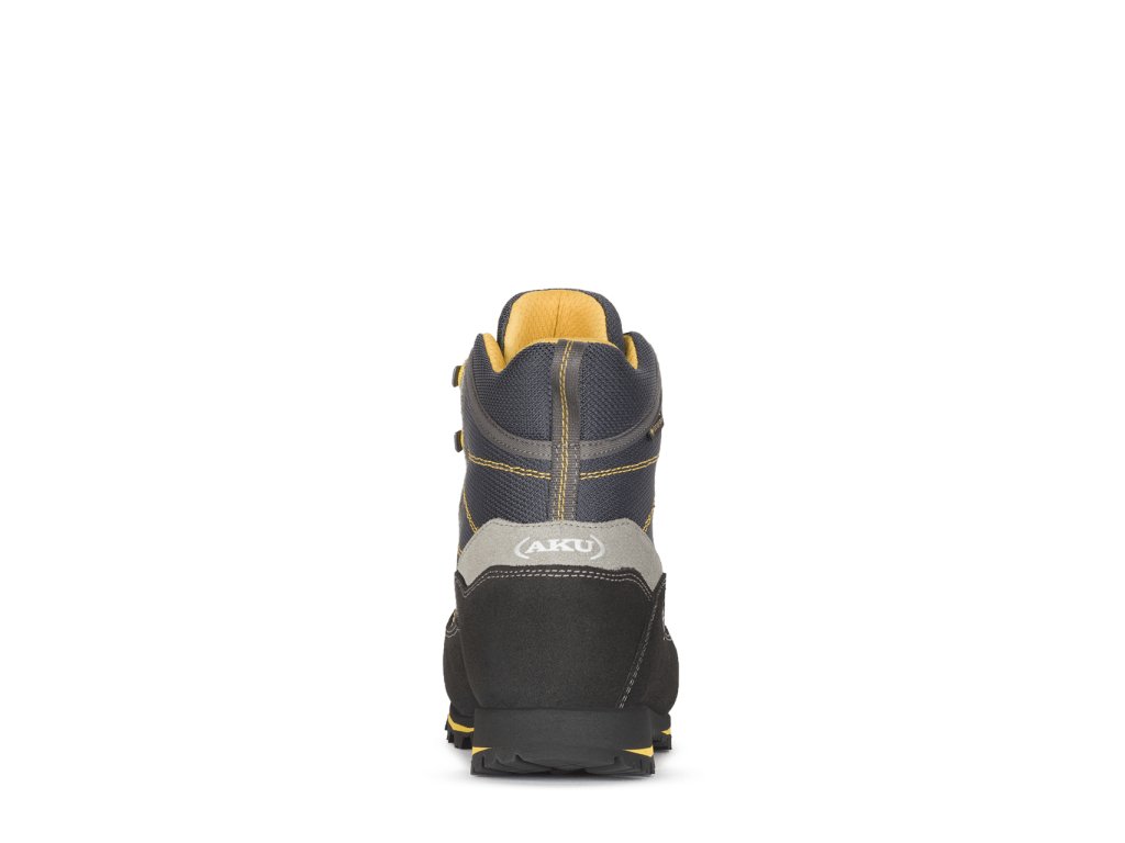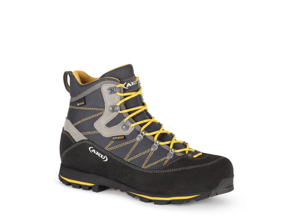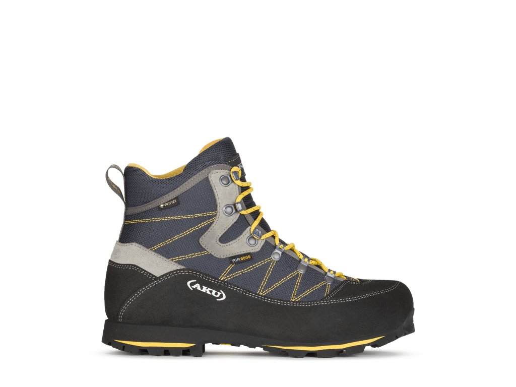 Svršek je vyroben z broušené kůže, která je 1,8 mm široká, v kombinaci s textilii AIR 8000 (vlastní technologie značky AKU zaručující až 11krát lepší prodyšnost oproti běžně používaným materiálům). Díky této kombinaci je bota mimořádně prodyšná a přitom pevná. Podšívku zajišťuje nepromokavá membrána Gore-Tex Performance Comfort a tak se v této botě nemusíte bát projít potokem či tajícím sněhem. O pohodlí při došlapu se stará mezipodešev EVA s dvojí hustotou pěny společně s tlumením IMS1, které vám dodá jistotu i v náročnějším terénu. Pohodlí a bezpečí také doplňuje nová semišová obsázka kolem celé boty. Špička je proti okopům o kameny či kořeny stromů zpevněná tvrdou gumou. O jistý záběr je zde postaráno díky podešvi VIBRAM Curcuma, která je exkluzivní pouze pro firmu AKU.