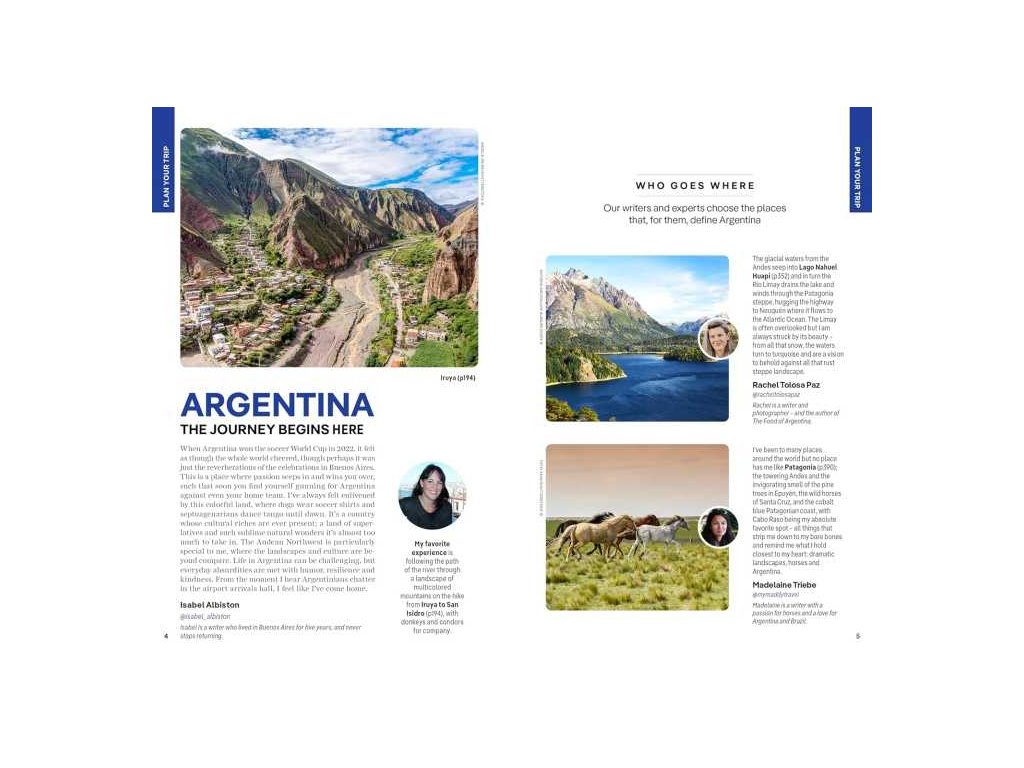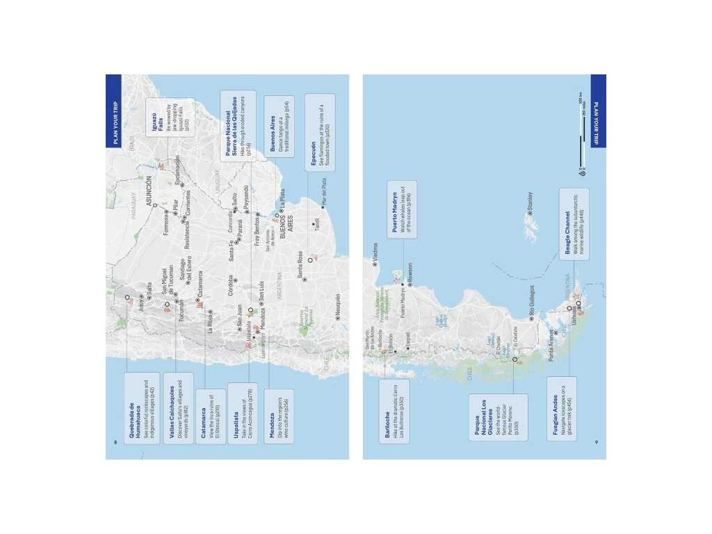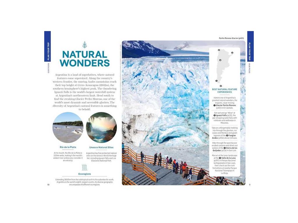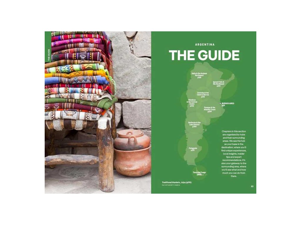 Zahrnuje: Buenos Aires, Pampy a pobřeží Atlantiku, vodopády Iguazu a severovýchod, Salta a severozápad And, Córdoba a centrální Sierry, Mendoza a centrální Andy, Bariloche a jezerní oblast, Patagonie, Falklandské ostrovy/Islas Malvinas, Ohňová země, Uruguay a mnoho dalšího