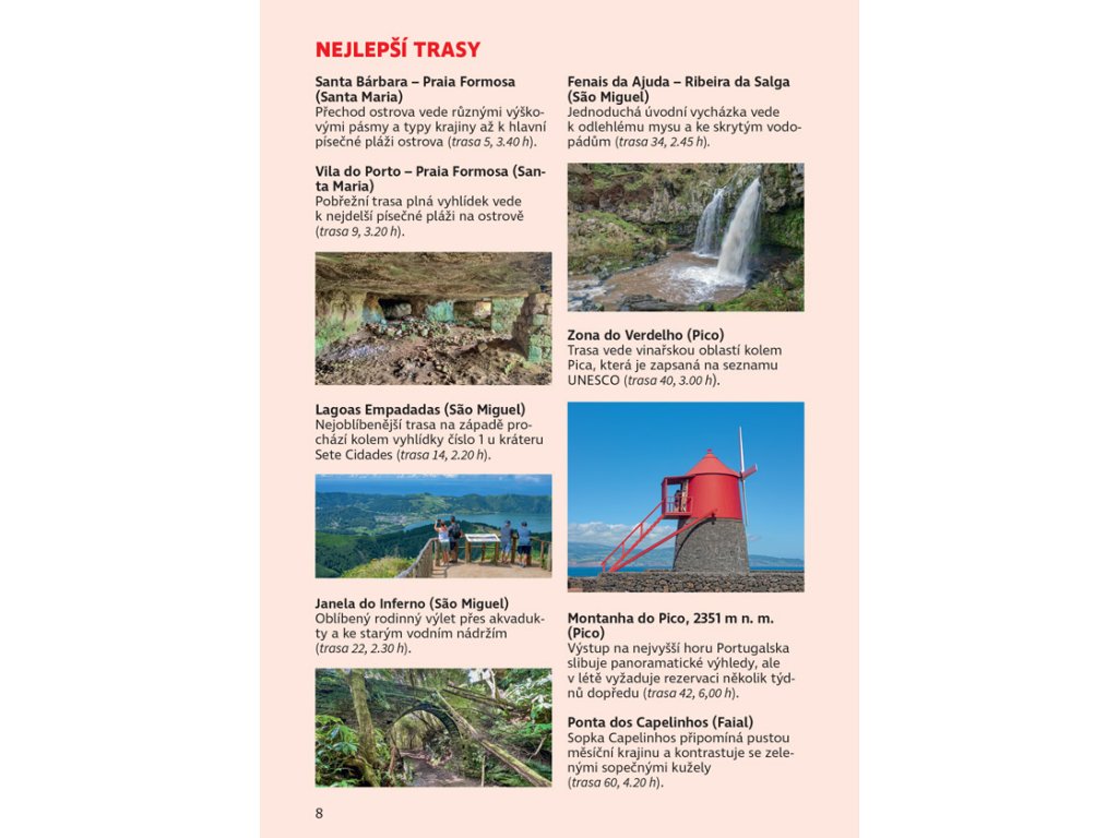 Autor Roman Martin zná Azory již mnoho let a v tomto průvodci se s vámi o praktické rady a tipy podělí. Díky 105 vybraným trasám budete mít možnost souostroví dokonale poznat i vy. Všechny popisy tras zahrnují informace o možnostech ubytování a občerstvení, upozornění na případné překážky a také tipy, jak se na danou túru co nejlépe připravit. Trasy jsou pro přehlednost rozděleny dle náročnosti do tří barevných kategorií (modrá, červená, černá) dle délky, převýšení a nároků na fyzickou kondici či orientační smysl.