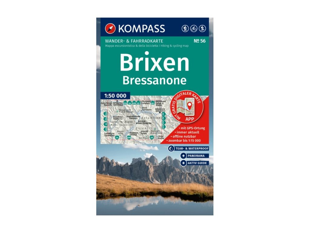 Mapa oblasti Brixen/Bressanone - turistická mapa od vydavatelství Kompass obsahuje aktuální značené turistické trasy, doporučené cykloturistické trasy a kompletní informace o turistických zajímavostech v okolí. A to vše na kvalitním topografickém mapovém podkladu. Podpora GPS je samozřejmostí.