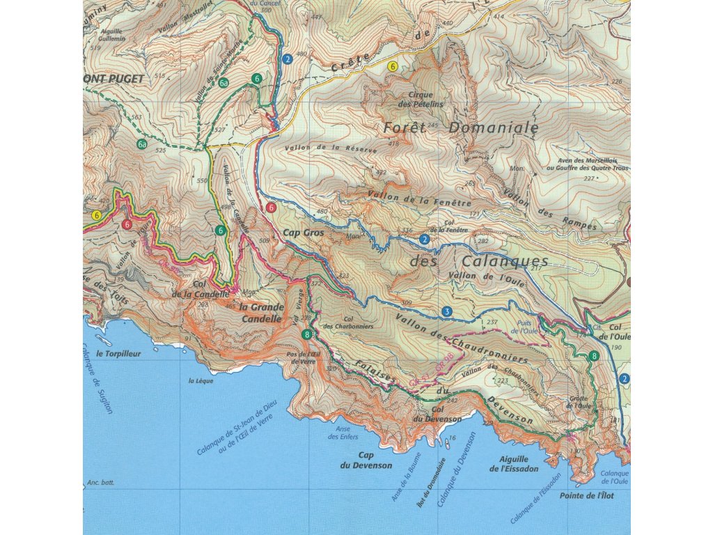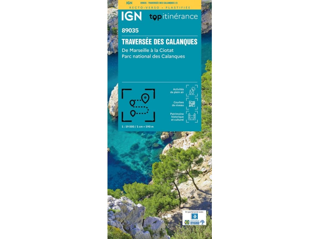 Mapa Národního parku Calanques od IGN Top Itinerance Tato mapa Calanques je díky svému přesnému měřítku 1:19 000 ideální pro pěší turistiku. Tato mapa IGN Top Itinerance je laminovaná a voděodolná.