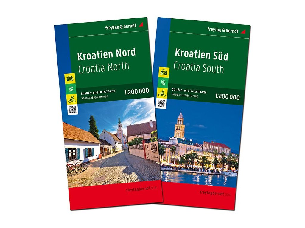 Set dvou oboustranných automap Chorvatska v měřítku 1:200 000. V mapách vyznačeny cyklistické trasy, panoramatické trasy, kulturní a přírodní zajímavosti, kempy, silnice s poplatkem apod. V přiložené brožurce rejstřík míst, sedmijazyčný popis zajímavostí (včetně češtiny), plánky městských center. Vydání 2026.