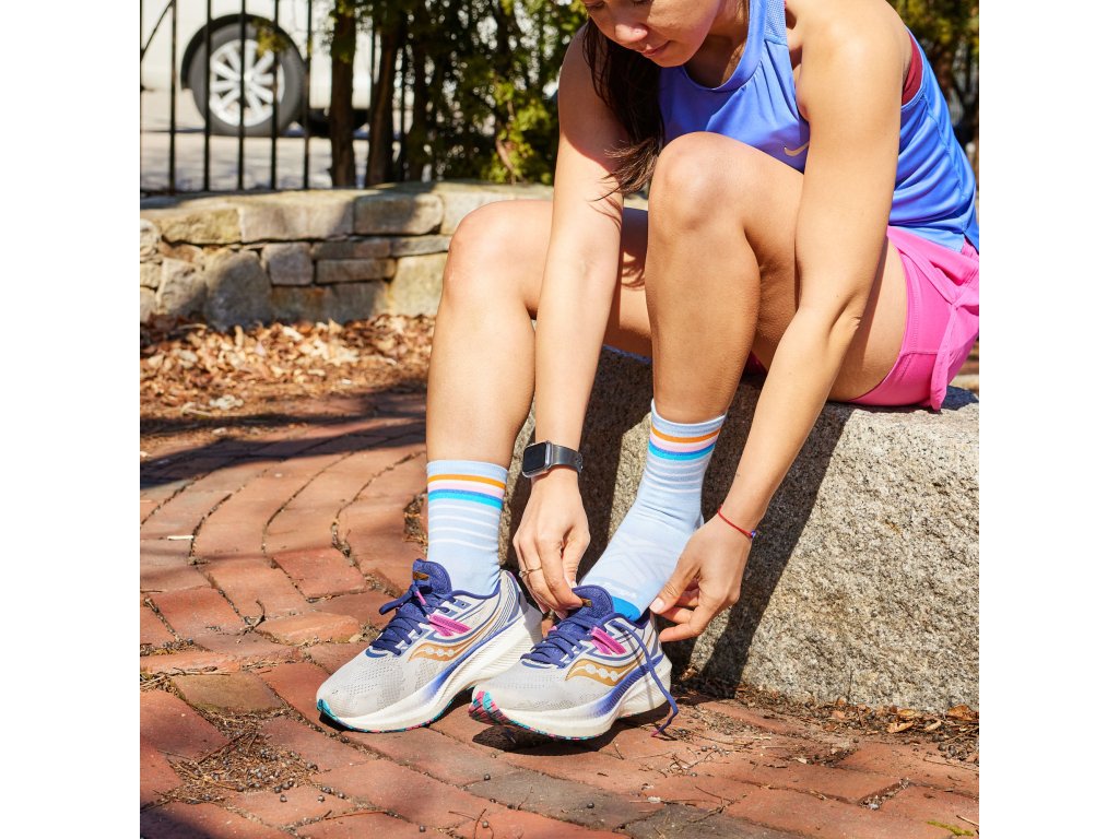 Ultralehké kotníkové ponožky z jemného materiálu s vyšším podílem merina. Perfektně přiléhají k noze, nárt je žebrovaný a obzvlášťě prodyšný, spodek ponožky zase obsahuje podporu klenby, která pomáhá tlumit únavu a otřesy. Pevný horní lem zabráňuje kamínkům a dalším nečistotám, aby se dostaly dovnitř. Ponožky v botě nekloužou, neshrnují se a díky merinu nezapáchají ani po vysoce intenzivní aktivitě. Díky těmto vlastnostem můžete zapomenout na puchýře i otlaky a bezstarostně si užívat běhu.