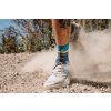 Ultralehké kotníkové ponožky z jemného materiálu s vyšším podílem merina. Perfektně přiléhají k noze, nárt je žebrovaný a obzvlášťě prodyšný, spodek ponožky zase obsahuje podporu klenby, která pomáhá tlumit únavu a otřesy. Pevný horní lem zabráňuje kamínkům a dalším nečistotám, aby se dostaly dovnitř. Ponožky v botě nekloužou, neshrnují se a díky merinu nezapáchají ani po vysoce intenzivní aktivitě. Díky těmto vlastnostem můžete zapomenout na puchýře i otlaky a bezstarostně si užívat běhu.