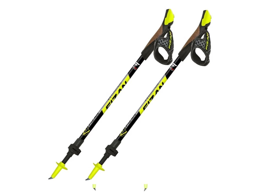 R-evolution z hliníku 7075. Rozdělena do 3 částí - 16/14/12 mm nastavitelných pomocí vnitřního rozpínacího systému a hliníkového pákového zapínání. Hliníkové pákové zapínání umožňuje správné nasměrování špičky hole. Tři části umožňují velmi malou velikost hole: v uzavřeném stavu měří pouhých 58 cm, v otevřeném stavu 130 cm. Grafika je vytvořena sublimační technikou s fluorescenčně žlutou a černou barvou. Uvnitř ekologického balení najdete příslušenství, vynikající tašku pro uložení hole po použití, gumové špičky pro Nordic Walking s kovovým kroužkem, karabinu a návod k použití a údržbě.