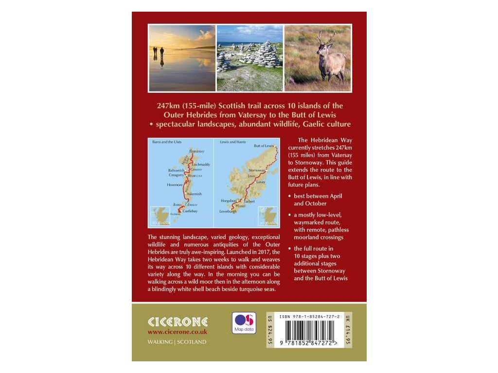 Průvodce pro pěší trasu Hebridean Way, která měří 155 mil (247 km) a vede napříč Vnějšími Hebridami. Od ostrova Vatersay až po Stornoway na ostrově Lewis je trasa vyznačená značkami a lze ji projít za 8 až 13 dní.