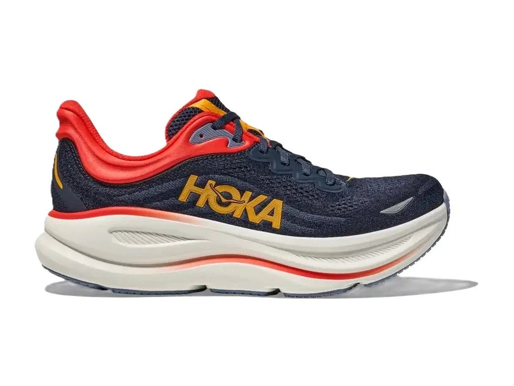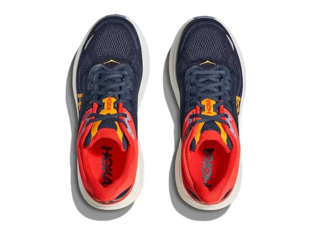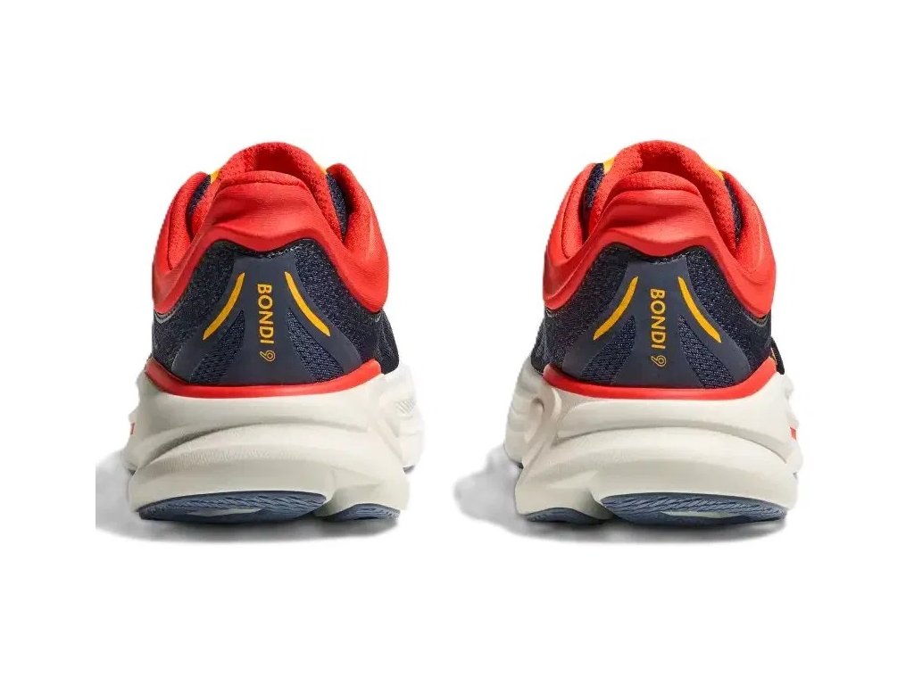 Hoka BONDI 9 je primárně určena pro každodenní běh. Patří k tomu nejtlumenějšímu, co HOKA nabízí, a právoplatně si vysloužila své místo v botnících mnoha běžců. Devátá verze je oproti osmičce přepracovaná "od špičky k patě". Nabízí vyšší mezipodešev s prémiovou superkritickou pěnou, která zaručuje měkký pohodlný došlap a vysokou návratnost energie v odrazu. Již tradičně vám při přechodu z došlapové do odrazové fáze pomůže kolíbka Meta-Rocker. Bondi devítka je dále vylepšena o 3D kotníkový límec a strukturovaný svršek pro větší prodyšnost. Pryžová podešev byla vylepšena na namáhaných místech pro zvýšení odolnosti.