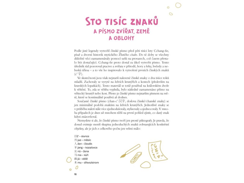 Dominika Sakmárová, sinoložka a autorka úspěšných knih Kočičí kožich a velbloud u Velké čínské zdi a Korejské halušky, vám v nové knize poodhalí bezmála stovku překvapujících a nezřídka úsměvných zajímavostí z čínské a korejské kultury a představí několik historických období, od časů první čínské dynastie až po současnost.