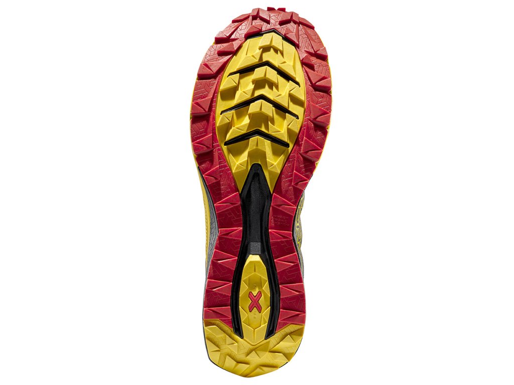 Trail runningová obuv Jackal II značky La Sportiva učiní z běhu vaší závislost. Její jedinečnost spočívá v důmyslné konstrukci podrážky opírající se o technologii Infinitoo™. Mezipodešev obuvi je tvořena EVA pěnou s dvojí hustotou, kterou doplňují dva polyuretanové polštářky. Toto spojení poskytuje dokonalé utlumení došlapu a zároveň přispívá k vysoké energetické návrtatnosti.