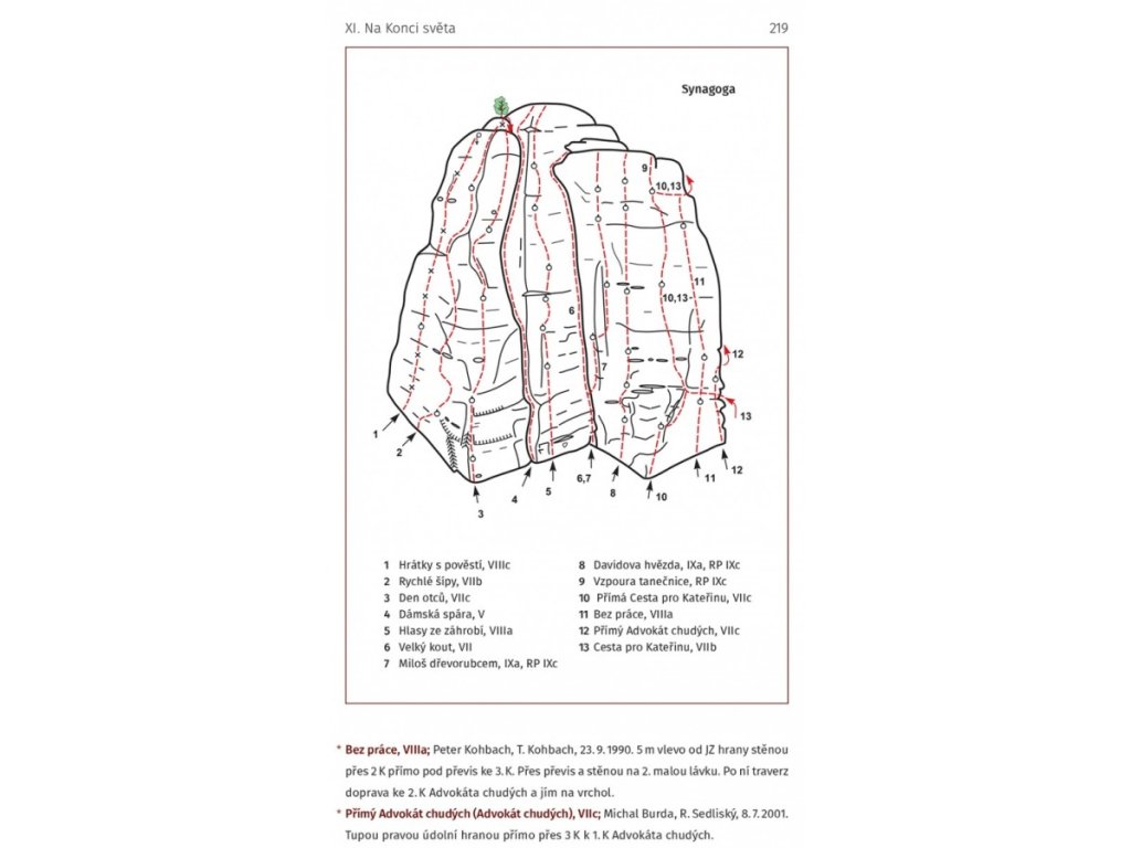 Každý z nich je opatřen stručnou úvodní charakteristikou, popisem přístupu, přístupovou mapou a téměř každý (s výjimkou posledních dvou sektorů u Děčína) i podrobným plánkem sektoru a nákresem cest. Průvodce obsahuje více než 100 půdorysných a 14 pohledových skic skal, které by měly pomoci při orientaci na místě. (Půdorysné skici jsou nové, pohledové skici až na jednu vycházejí z minulých průvodců.) Uvedeny jsou také GPS souřadnice. Vše je doplněno o krásné fotografie napříč celou oblastí. Autorem horolezeckého průvodce je Jiří "Piškot" Chocholoušek a Vladislav Nehasil, kteří jsou také aktivní provýstupci v této oblasti.