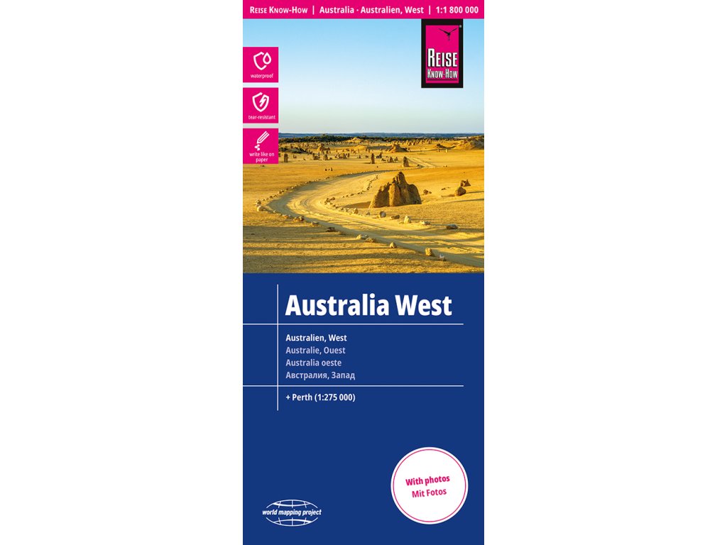 Oboustranná voděodolná automapa západní Austrálie. Podkla mapy tvoří podrobná silniční síť doplněná kilometráží a číslováním silnic, naleznete i železnice, trasy trajektů, lanovky a pěší trasy. V mapě jsou jednoduchými symboly zaznačeny turisticky zajímavé objekty (muzea, památky UNESCO, kláštěry), naleznete vyznačené národní parky, lletiště a mnoho dalších užitečných informací. Výškopis pomocí barevné hypsometrie a vrstevnic. Souřadnicová síť WGS 84 pro GPS. Součástí mapy je rejstřík sídel, legenda mimo jiné i v angličtině. Mapa je oblíbená zejména pro svou přehlednost a čitelnost. Vydání 2024.