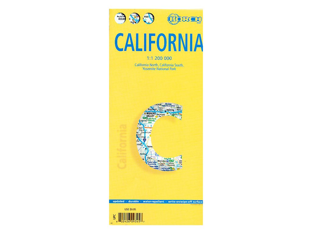 Oboustranná mapa Kalifornie v laminované úpravě (odolná vůči dešti a roztržení). Mapa obahuje velké množství znaků pro turisticky zajímavé lokality, od památek a atrakcí až po kempy, benzínové stanice. Druhy silnic jsou zřetelně odlišeny, u dálnic jsou čísla exitů, kilometráž úseků. Zaznačeny jsou hranice národních parků a chráněných oblastí. V samostatném výřezu mapa Yosemitského NP. Dále naleznete rejstřík sídel, informace o regionu. Vydání 2008.