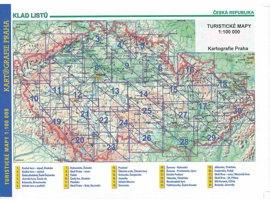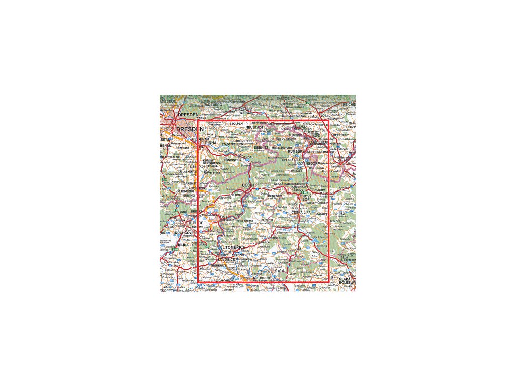 Turistická mapa vydavatelství Kartografie, zeměpisné souřadnice v systému WGS84 (pouze rámové údaje). Vrstevnice po 20 m, turistické a cykloturistické značení s kilometráží dílčích úseků (zaznamenány značené cykloturistické trasy, půjčovny kol ČD), symbolické znaky pro turisticky významné objekty a prvky, stejně podrobné značení i mimo území ČR, zvýrazněna prodejní místa turistických známek. Na rubové straně abecedně řazený popis turisticky zajímavých lokalit. Pokryté území: JV Mšeno, JZ Klapý, SZ Eschdorf (D), SV Niedercunnersdorf (D). Vydání 2010.