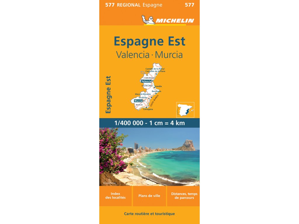 Jednostranná automapa španělských regionů Comunidad, Valenciana a Murcia. Rozlišení komunikací do úrovně cest s nezpevněným povrchem, kilometráž úseků, čísla a názvy exitů, váhové a výškové limity u mostů a podjezdů, úseky nebezpečným klesáním/stoupáním, sezónně uzavřené úseky, benzínové stanice. Dopravní informace jsou doplněny o turistické symboly. Zvýrazněny jsou kulturní a přírodní zajímavosti, možnosti sportovního vyžití. Reliéf je znázorněn pomocí stínování. Mapa vedle hlavního listu obsahuje plány Valencie, Alicante a Murcia, vzdálenostní tabulku a rejstřík sídel. Vydání 2022.