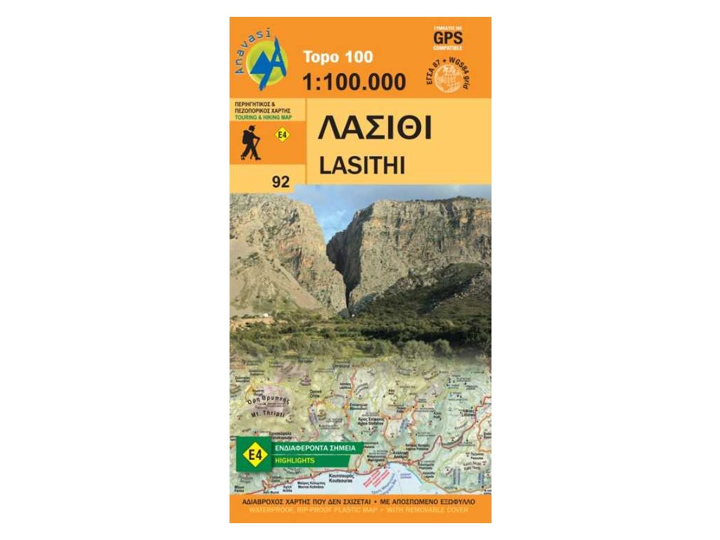 Jednostranná turistická mapa východní části Kréty je zpracovaná na voděodolném materiálu v měřítku 1:100 000. Mapa zachycuje síť silnic (včetně kilometráže, benzínové stanice), důležité orientační body, tábořiště, možnosti občerstvení, kulturní památky (kláštery, muzea, antické zríceniny), výškopis vyjádřen pomocí vrstevnic po 100 m, barevné hypsometrie a výškových kót Mapa obsahuje GPS souřadnice WGS 84. Na rubové straně nalezente rejstřík sídel, plán Aghios Nikolaos 1:10 000 a užitečná telefonní čísla. Veškerý popis jak v řečtině, tak v angličtině. Velmi přehledně a podrobně zpracovaná mapa určena např. i pro cykloturistiku. Vydání 2023.