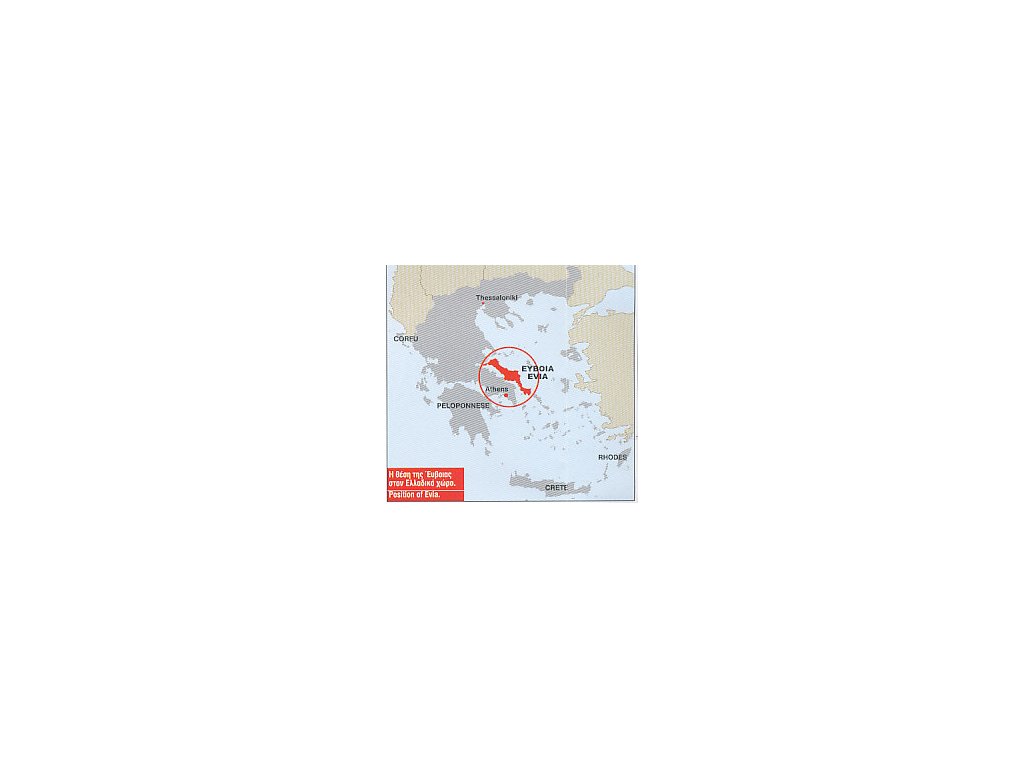 Mapa řecké prefektury Evia/Euboia (Střední Řecko) v měřítku 1:170 000. Silniční síť rozčleněna do 4 úrovní, doplněna o kilometráž. Sídla popsána jak řeckým písmem tak latinkou. Výškopis znázorněn vrstevnicemi a výškovými kótami. Piktogramy jsou zobrazena zajímavá či užitečná místa (kempy, jeskyně, hrady, archeologická naleziště, kláštery, přístavy, trasy trajektů, majáky apod.). Rejstřík sídel v řečtině. Zobrazené území: JV - Karistos, JZ - Athény, SZ - Kamena Vourla, Raches, SV - ostrov Skiros/Skyros. Na rubové straně plánky měst: Vasiliko (1:5 000), Eretria (1:5 000), Karystos (1:5 000), Amarynthos (1:5 000), Chalkida (1:5 000), Loutra Edipsou (1:5 000) včetně rejstříků ulic a místopisného textu v řečtině. Šestijazyčná legenda.
