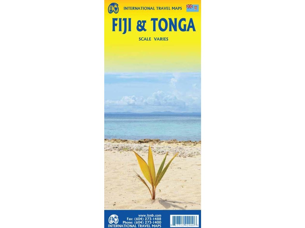 Oboustranná mapa ostrovů Fiji (1:380 000) a Tonga (různá měřítka). Přehledná silniční síť s kilometráží, barevná hypsometrie pro znázornění reliéfu, velké množství turistických symbolů (tábořiště, informační kanceláře, odpočívadla, turisticky významné lokality), navíc znázorněny hranice národních parků. V samostatných výřezech plán městského centra Suva city (1:6 500), Nuku´Alofa (1:15 000), Pangai (1:15 000), rejstřík sídel. Textová pole se stručným místopisem v angličtině. Vydání 2025.