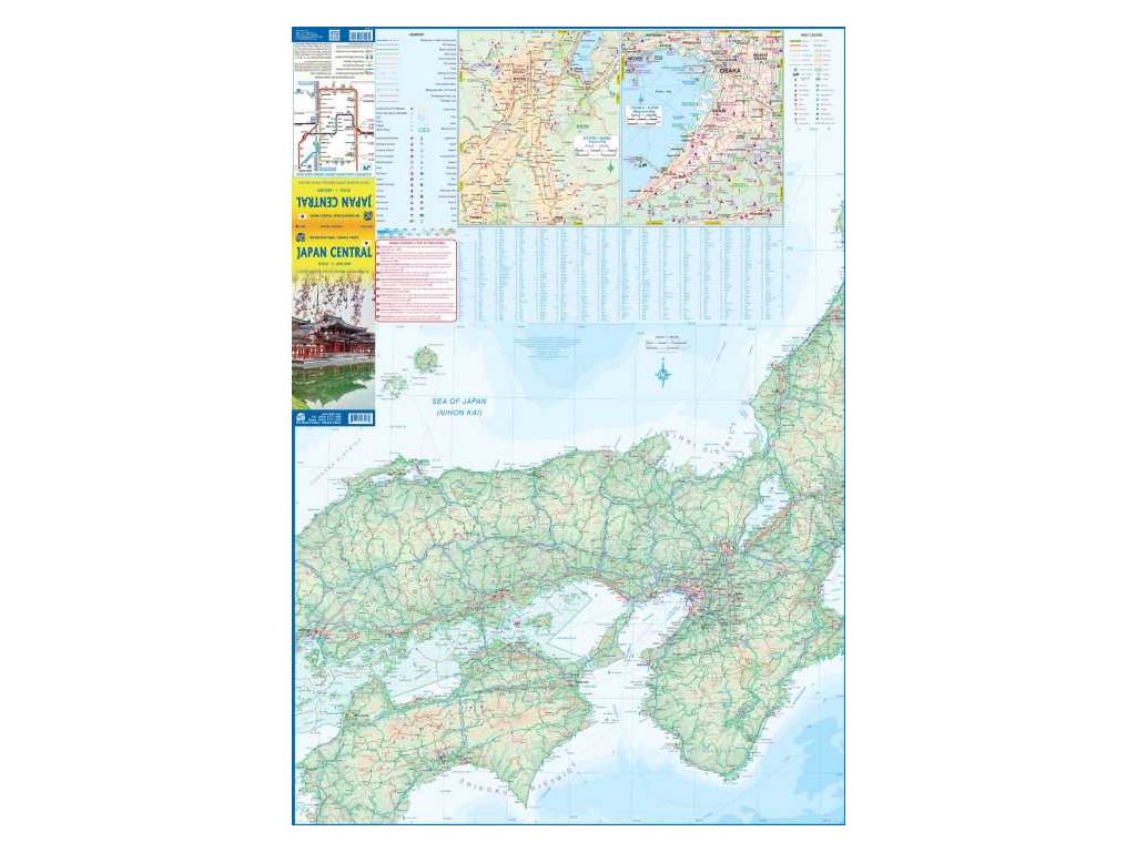 Oboustranná mapa pokrývající „hlavní“ oblasti Japonska, které nejčastěji navštěvují turisté. Strana 1 pokrývá oblast od Tokia na sever až po Sendai/Nigata a na západ až po Nagoju. Strana 2 pokrývá část Japonska až po Hirošimu, s vložkami oblastí Ósaka/Kóbe a Kjóto/Nara. Samozřejmě jsou zde vyznačeny všechny turistické atrakce.