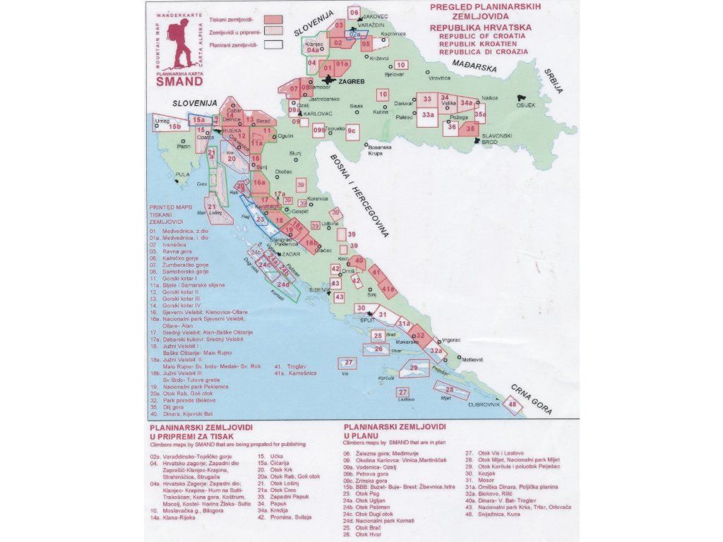 Jednostranná turistická mapa Jižního Velebitu, části zahrnující národní park Paklenica. Vrstevnice po 50, 25 a 12,5 metrech, turistické značené trasy linií a číslem, cykloznačení. Na zadní straně výčet a popis tras s kilometráží, chorvatsky a anglicky. Na rubové straně vlastivědný místopis.