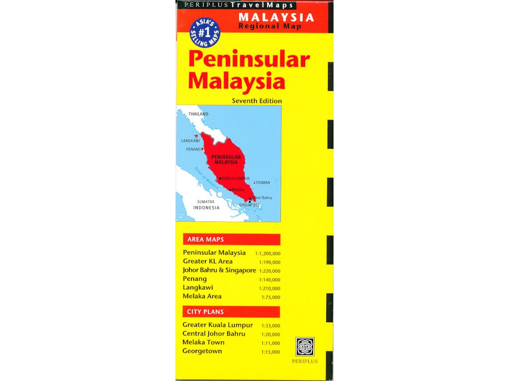 Oboustranná mapa pevninské části Malajsie na voděodolném papíře. Sympaticky přehledné mapy, vyznačena silniční síť, hlavní orientační body, turistické zajímavosti a služby. Výškopis je naznačen stínováním reliéfu a barevnou hypsometrií. Ve výřezech naleznete doplňkové mapy různých měřítek (např.: plán Georgetownu, Melaka, Penang, Langkawi, apod.)