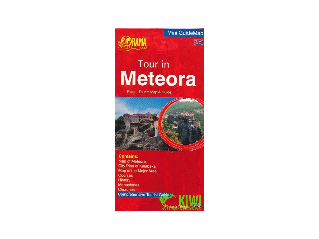 Kapesní panoramatická ilustrovaná mapa řecké oblasti Meteora zobrazuje silniční síť, sídla a skalní útvary. Řada symbolů je použita pro turisticky zajímavá či užitečná místa, jako např. kláštery, kostely, parkoviště, muzea, pošty, kempy, zdravotnická zařízení, železniční nádraží apod. Popis v mapě latinkou i řeckým písmem. Na rubové straně plánek městkého centra Kalampaka a automapa regionu Wider (okolí měst Trikala, Karditsa, Kalambaka, Metsovo). Na obou stranách naleznete stručného průvodce po oblasti v angličtině (historie, popis zajímavých míst a pamětihodností a návrh 7mi itinerářů).