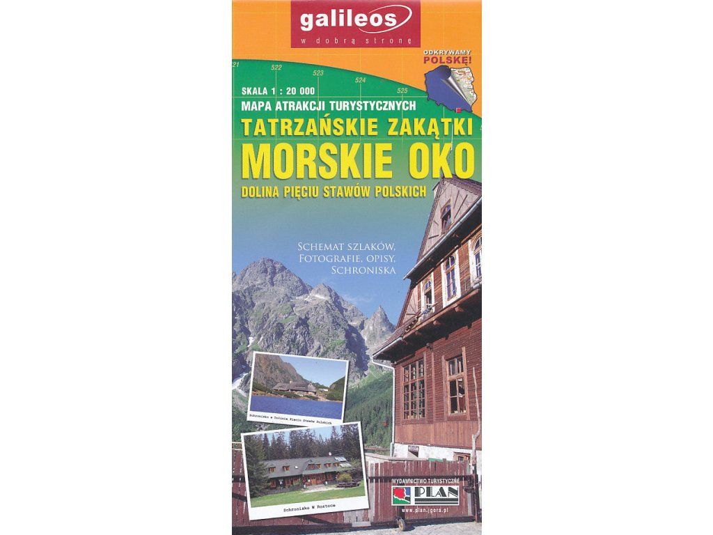 Mapka blízkého polského okolí tatranských ples Morskie Oko a Czarny Staw pod Rysami v měřítku 1:20 000. Do mapy vyznačeno 15 zajímavostí, které jsou na rubové straně popsány v polštině a doprovázeny barevnými ilustrativními fotografiemi. Zobrazené území: JV-Pusté veže (1 942 m n.m.), J-Veĺké Hincovo pleso, JZ-Nižné Temnosmrečinské pleso, Z-Kozi Wierch, SZ-Strzelecka Koleba )1 358 m n.m.), SV-Lysá poĺana. Vydání 2013.