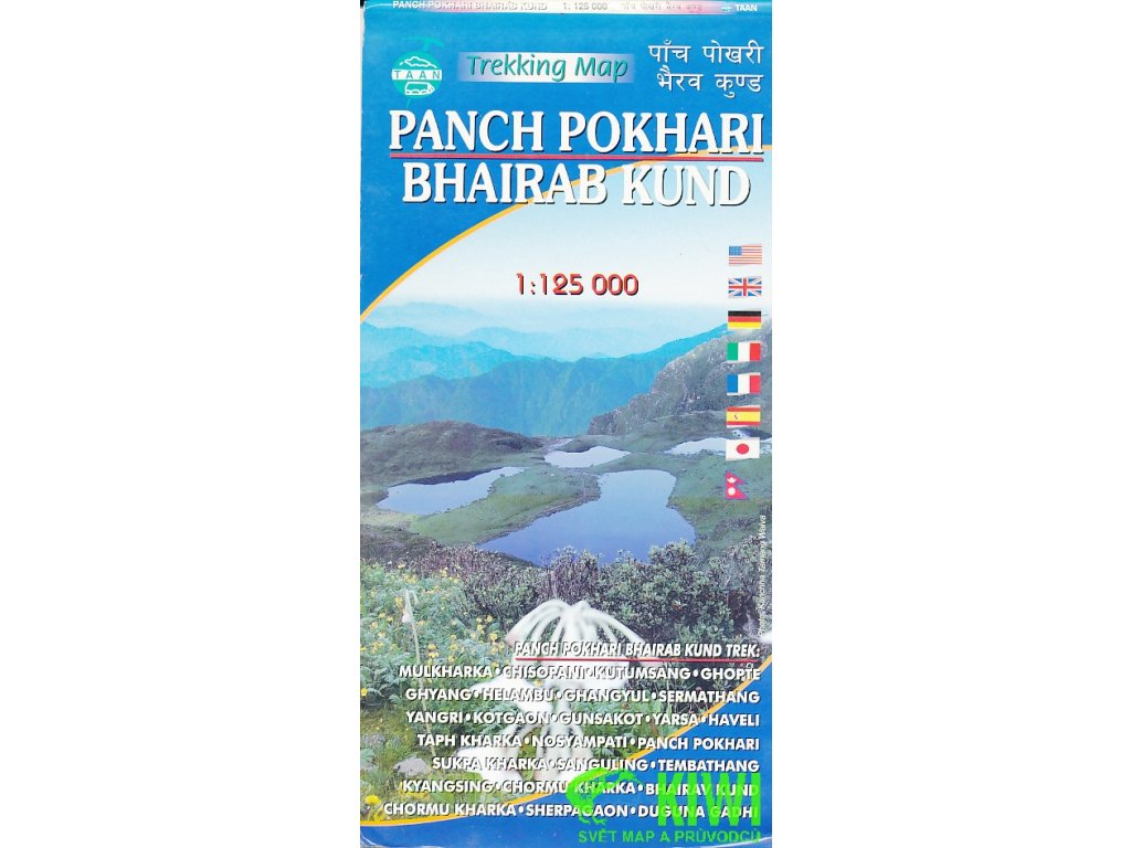 Jednostranná mapa 1:125 000 nepálského národního parku Langtang. Vrstevnicový interval 80 m. Stínovaný reliéf. Zobrazená sídla, silnice, chrámy, pošty, jeskyně, nemocnice, kempy, hotely, řeky, ledovce a další. Vyznačeny trekové trasy. Tabulka 2 treků rozdělených na jednotlivé části s příslušným převýšením a časovým rozvrhem - Chautara Panch Pokhari Helambu Trek a Bhairab Kunda Trek. Zobrazené území: J - Kathmandu, JV - Makaibari, V - Kodari, SV - hranice s Tibetem (tibetské území není zobrazeno), S - Rasuwagadhi (hranice s Tibetem), SZ - Salasungo (Ganesh III) 7043 m n.m., Z - Samari Bhanjyang, JZ - Mahadevbesi. Vydal Nepal Map.