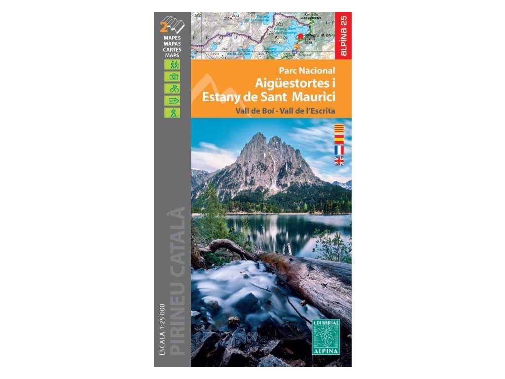 Set dvou turistických map zachycující oblast NP d´Aigüestortes i Estany de Sant Maurici, Vall de Boí, Els Encantats. Mapy obsahují turistické značení (dálkové trasy i lokální značení), symbolické znaky pro možnosti ubytování (od hotelů přes horské chaty až po tábořiště). Znaky pro přírodní a kulturní zajímavosti, zaznačeny jsou i lokality, kde lze provozovat horolezectví, paragliding a jiné outdoorové sporty. Podrobně vyznačený reliéf pomocí stínování a vrstevnic po 10 m, stejně tak se může mapa pochlubit detailním topografickým podkladem. Geografické souřadnice v systému UTM. Jedna z nejkvalitnějších map pro turistiku ve Španělsku. Vydání 2023.
