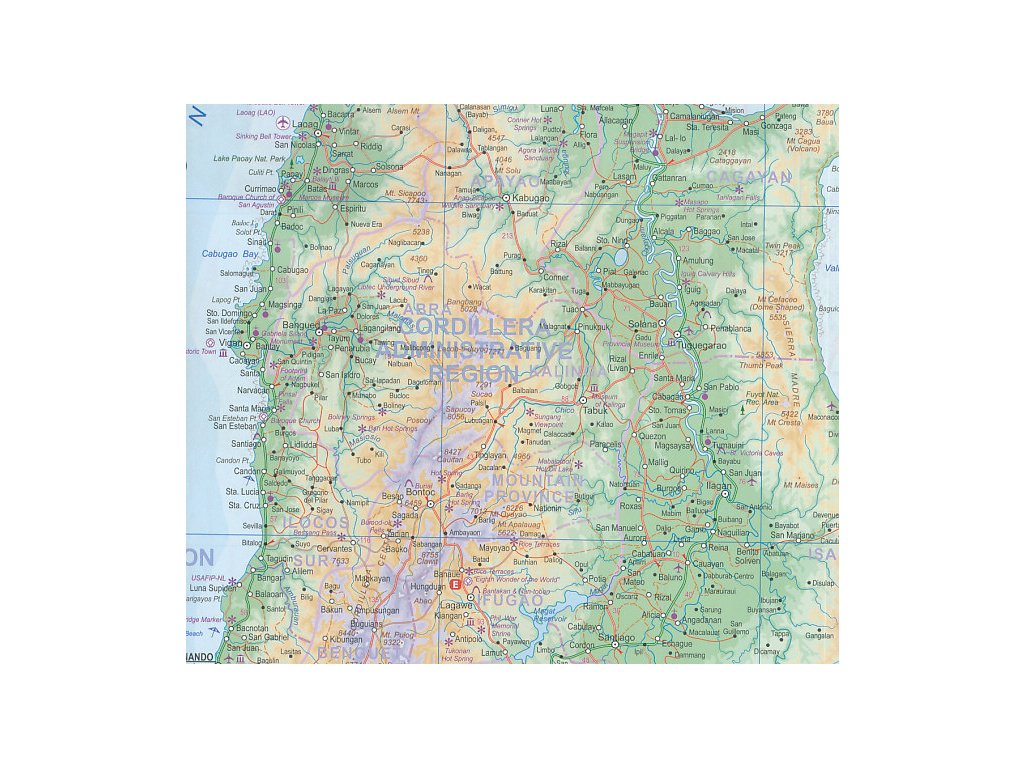 Oboustranná mapa Filipín, silniční síť s kilometráží, značené národní parky, turistické zajímavosti, místa vhodná pro potápění, golfová hřiště, pláže, hotely, nemocnice, čerpací stanice, letiště a mnoho dalšího. Výškopis pomocí barevné hypsometrie. Seznam TOP zajímavostí. Rejstřík míst. Plány městských center (Manila 1:12 000, Cebu 1:18 000 a Davao 1:25 000). Součástí mapy jsou stručné charakteristiky zajímavých míst v angličtině - textová pole jsou rozmístěna v mapě v moři. Vydání 2023.