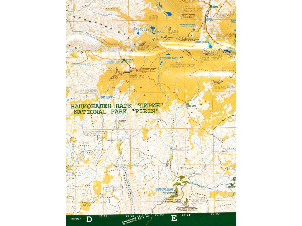 Turistická mapa severní části bulharského pohoří Pirin v měřítku 1:40 000. Výškopis vyjádřen pomocí vrstevnic po 25 metrech a výškových kót. Dále zobrazen vodopis, sídla, skalní útvary, kempy, chaty, přístřešky, informační centra, policejní stanice, autobusové zastávky, zdravotnická zařízení apod. Dvojjazyčná legenda (bulharsky, anglicky). Zeměpisné souřadnice po 1'. Popis mapy latinkou i azbukou. Na rubové straně plán Bansko, seznam ubytovacích možností, barevné ilustrativní fotografie, panoramatický pohled na pohoří a inzerce. Zobrazené území: JZ-Dolna Gradeshnica, SZ-Brejani, SV-Bania. Vydání 2007.