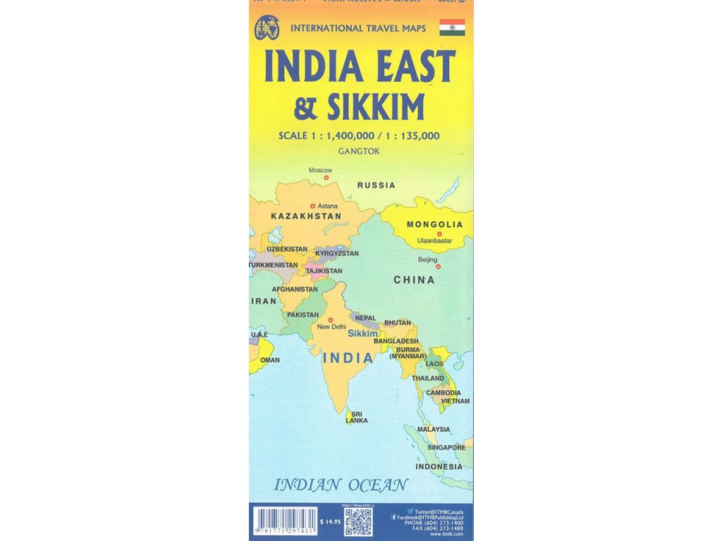 Oboustranná automapa indického Sikkimu a severozápadní Indie s bohatým turistickým obsahem. Mapa obsahuje silniční síť s kilometráží úseků a číslováním silnic. Symbolickými znaky zaznačené památky, turistické zajímavosti, národní parky, hotely, tábořiště, vyhlídky, turistické atrakce. Výškopis je zobrazen pomocí barevné hypsometrie. Zeměpisné souřadnice. Rejstřík míst. Plán Kalkaty a Gangtok. Vydání 2012.