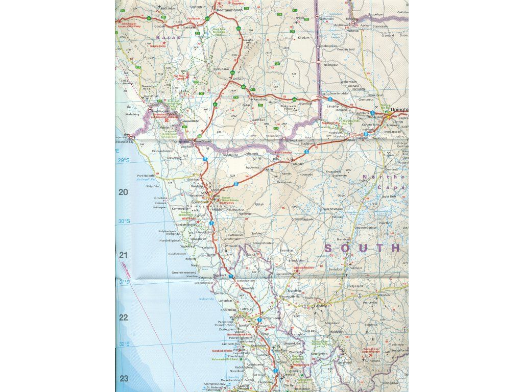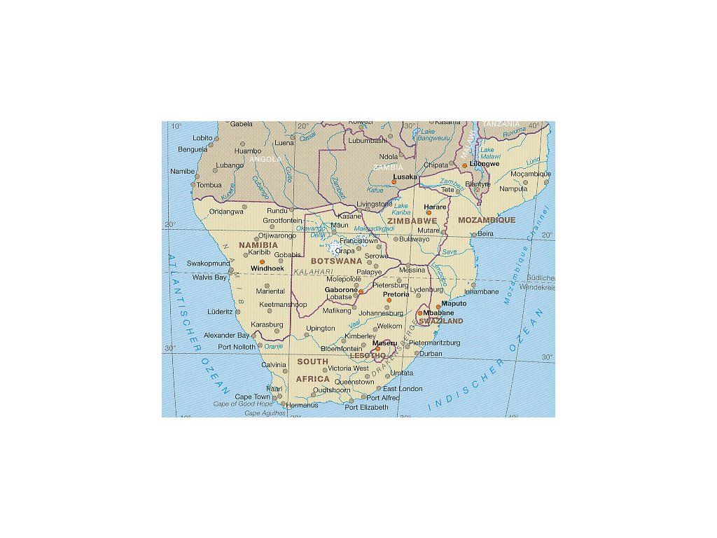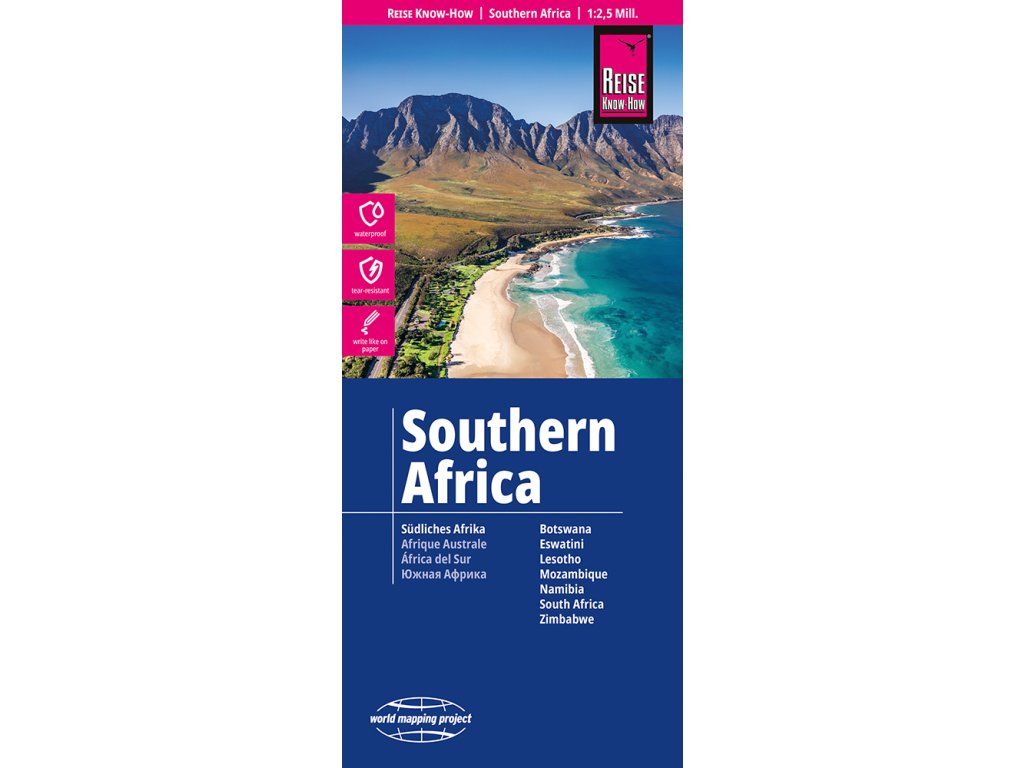 Oboustranná automapa jižní Afriky (Namibie, Botswana, Lesotho, Mozambik, JAR, Svazijsko, Zimbabwe) . Základ mapy tvoří podrobná silniční síť doplněná kilometráží a číslováním silnic, dále naleznete železnice a trasy trajektů. V mapě jsou jednoduchými symboly zaznačeny turisticky zajímavé objekty (památníky, památky UNESCO, pevnosti), naleznete vyznačené národní parky, pláže, místa vhodná pro potápění, letiště a mnoho dalších užitečných informací. Výškopis pomocí barevné hypsometrie a vrstevnic po 500 - 1000 m. Souřadnicová síť WGS 84 pro GPS. Součástí mapy je rejstřík sídel, legenda mimo jiné i v angličtině. Mapa je oblíbená zejména pro svou přehlednost a čitelnost. Vydání 2026.