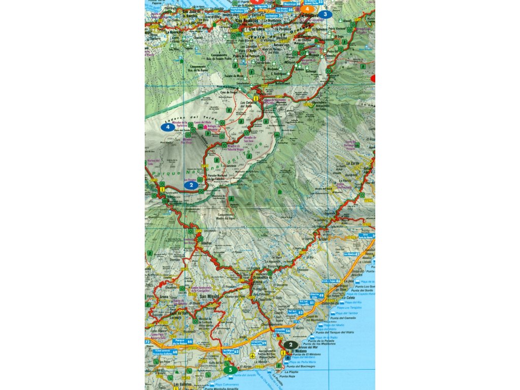 Turistická mapa regionu na voděodolném materiálu. Dobře zaznačena silniční síť včetně kilometráže, dále mapa obsahuje turistické značení, symbolické znaky pro přírodní a kulturní památky, tábořiště, služby a výčet vždy 5 nejzajímavějších památek v oblasti kultury, přírody, pamětihodností, adrenalinu, kulinářství. Na rubové straně naleznete stručný popis těchto památek v deseti jazycích (včetně češtiny), dále rejstřík sídel. Ve výřezu plán města santa Cruz de Tenerife. Vydání: Z důvodu časté aktualizace map Vám dotaz na rok vydání rádi zodpovíme telefonicky či emailem. Děkujeme za pochopení.