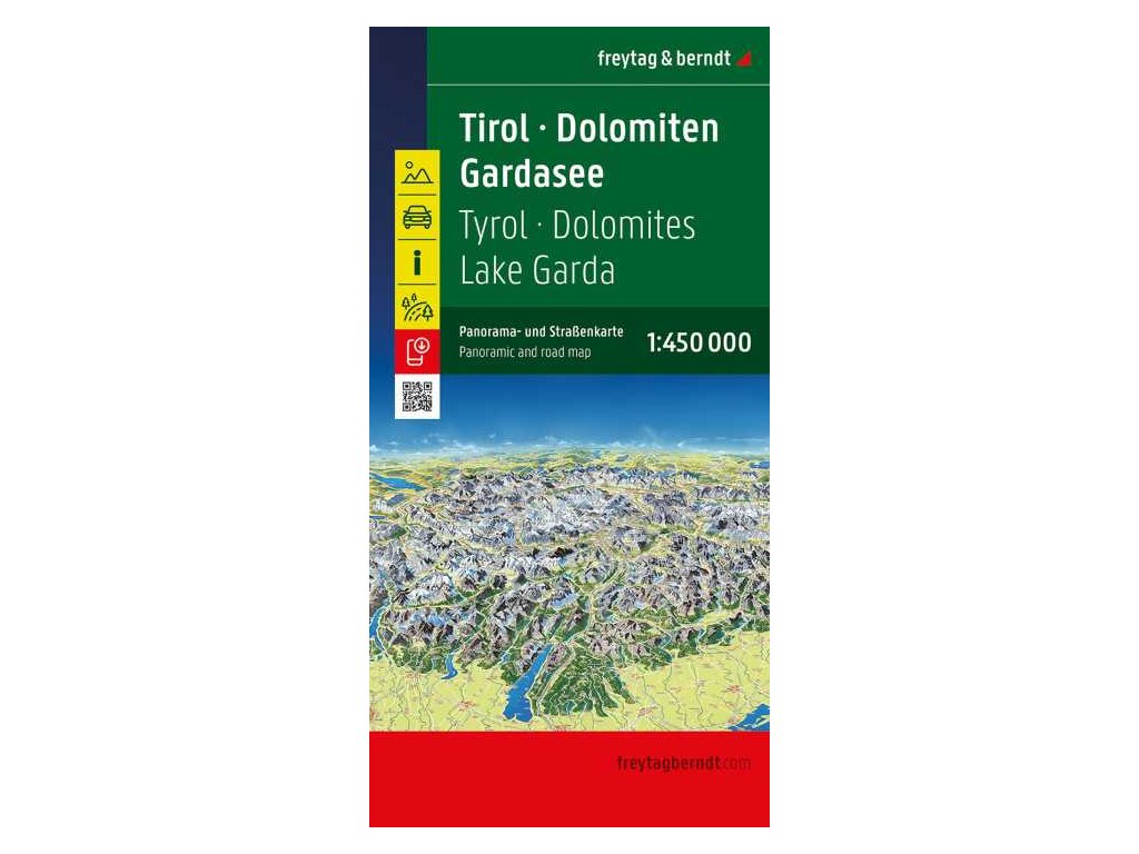 Jednostranná automapa Dolomit, Tirol a regionu v okolí Lago di Garda. Základem motoristické vrstvy je silniční síť s kilometráží, čísly silnic, zvýrazněny jsou hlavní dopravní tahy, benzínové stanice, uzavřené úseky, nebezpečné stoupání/klesání. Z turistického obsahu jsou zaznačeny přírodní a kulturní zajímavosti, hranice národních parků, úseky s panoramatickým výhledem, možnosti ubytování, sportovních aktivit. Výškopis je zakreslen pomocí stínování. Na rubové straně naleznete panoramatickou mapu oblasti, česká legenda. Vydání: Z důvodu časté aktualizace map Vám dotaz na rok vydání rádi zodpovíme telefonicky či emailem. Děkujeme za pochopení.