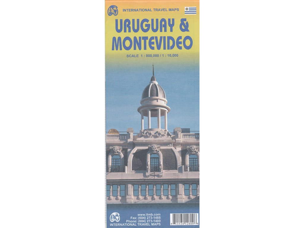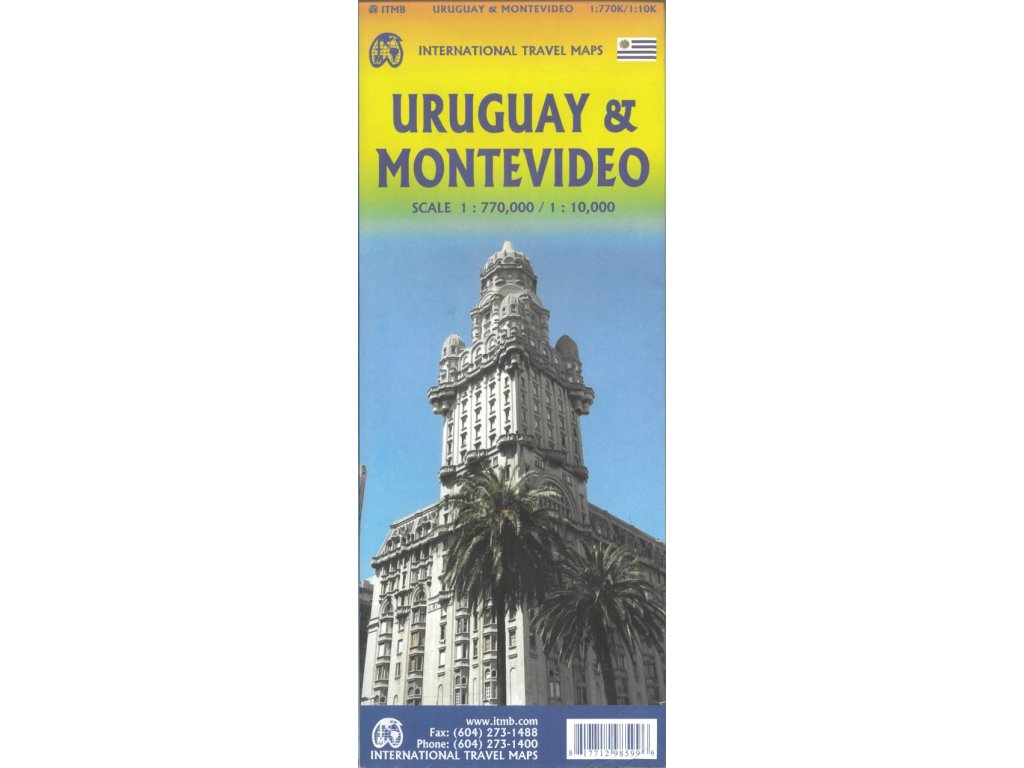 Jednostranná mapa Uruguaye s barevnou hypsometrií, kilometráží silnic. Značené národní parky, kempy, turistické zajímavosti. Ve výřezech plánky městských center (Colonia del Sacramento, Punta del Este). Na rubové straně mapy naleznete přehledný plán Montevidea v měřítku 1:10 000 a krátké popisy zajímavých míst v angličtině. Rejstřík míst. Vydání 2024.
