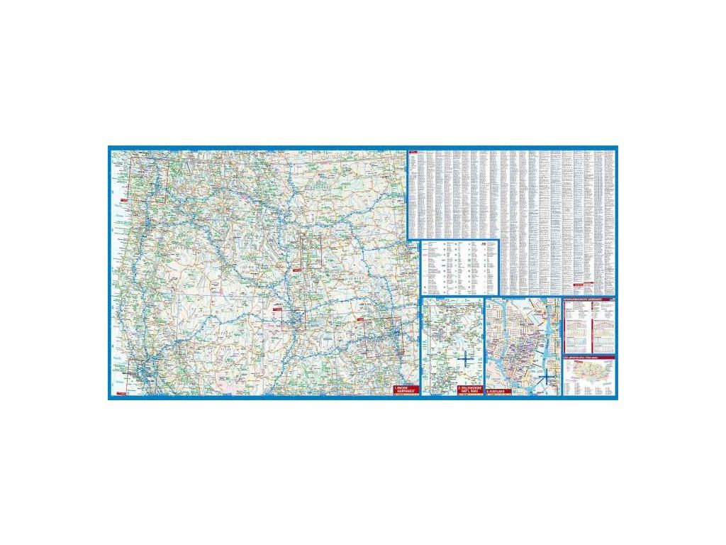 Oboustranná mapa severozápadu USA v laminové úpravě. Mapa je složena z několika výřezů - hlavní mapa se stínovaným reliéfem, sítí hlavních silnic a především s turistickými znaky pro kulturní a přírodní památky, možnosti ubytování a informační kanceláře. Na rubové straně se nachází řada výřezů v různých měřítkách od plánů měst Portland, San Francisco, Seattle po mapy širších okolí velkých měst jako je Denver a Salt Lake City, dále mapa NP Yellowstone. Rejstřík sídel, stručné geografické info. Koupí získáte jak přehlednou turistickou mapu celého severozápadu tak plány nejvýznamnějších měst a turistických destinací. Vydání 2022.