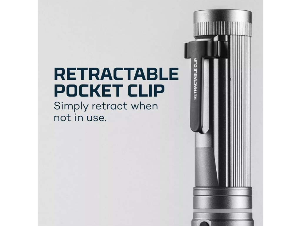 Franklin ™ Slide je vysoce výkonná 500 lumenová C • O • B LED svítilna a pracovní světlo, zatahovací spona a výkonná magnetická základna. Je vybaven 7 světelnými režimy, Direct-to-Red a Power Memory Recall. Výkonná LED svítilna může svítit až do vzdálenosti 160 metrů. Přiložená baterie umožňuje mezi nabíjeními až 60 hodin provozu.