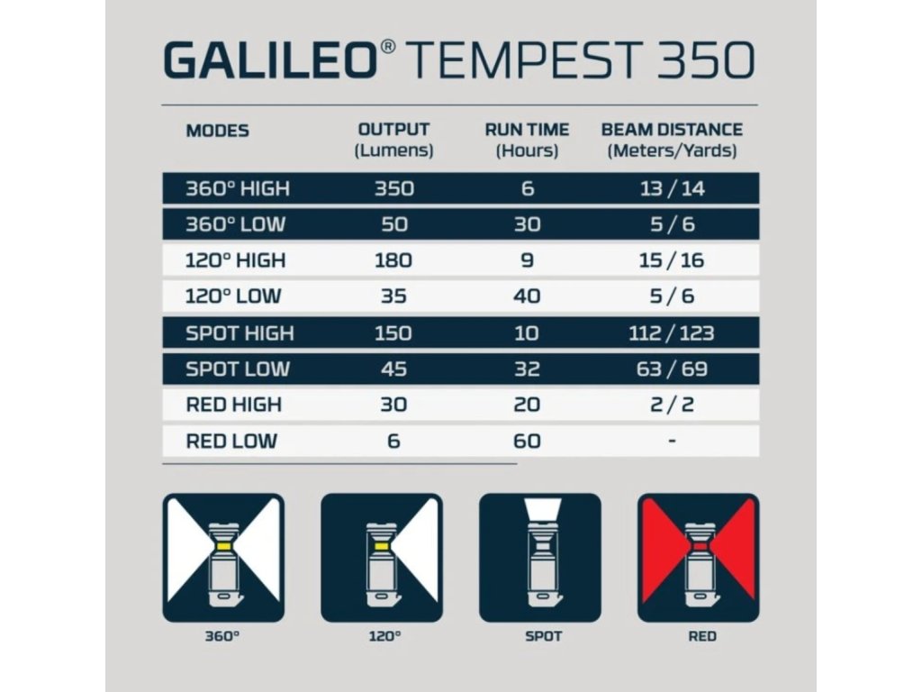 Lucerna Galileo ™ Tempest 350 – kompaktní a výkonná dávka světla, která je připravena posunout vaše venkovní zážitky na dobrodružství.