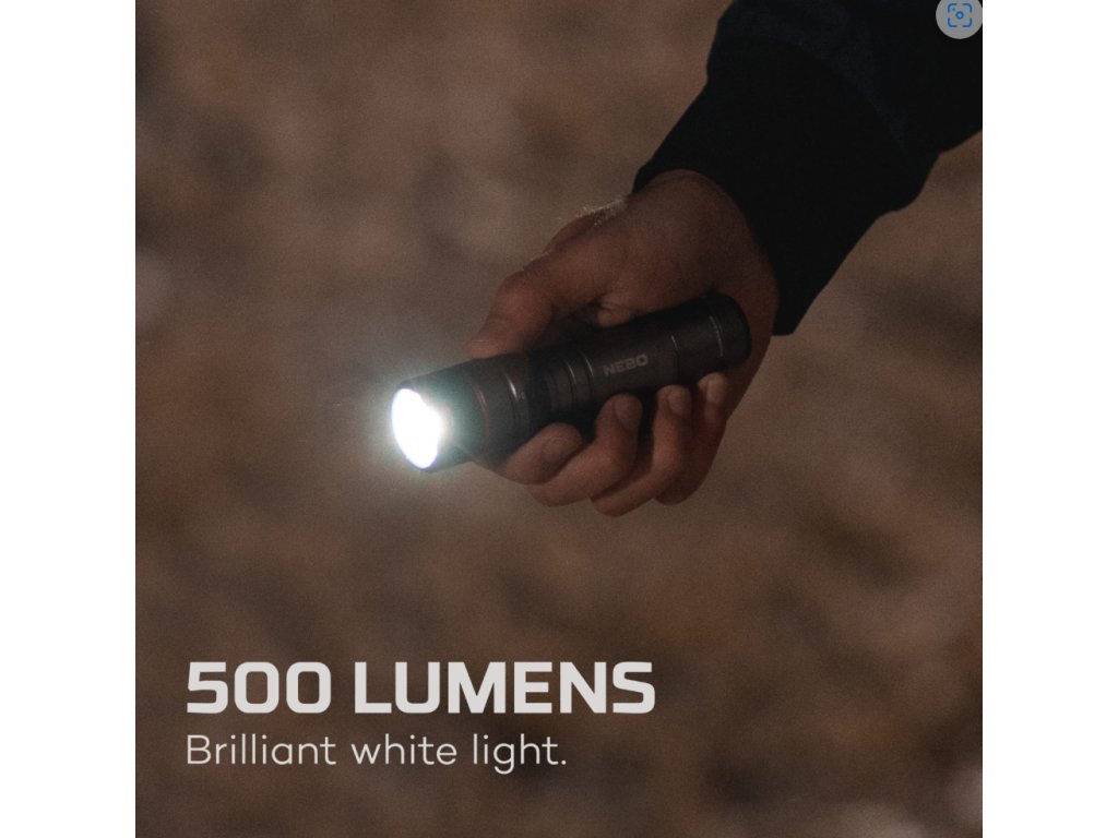 Svítilna Newton ™ 500 od NEBO je výkonná ruční svítilna se 4 světelnými režimy. Díky snadno dotykovému přepínači umístěnému vzadu je snadné přepínat mezi režimy a výkonná LED v této baterce může svítit 146 metrů.