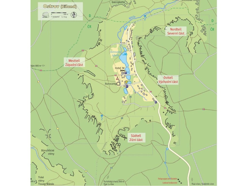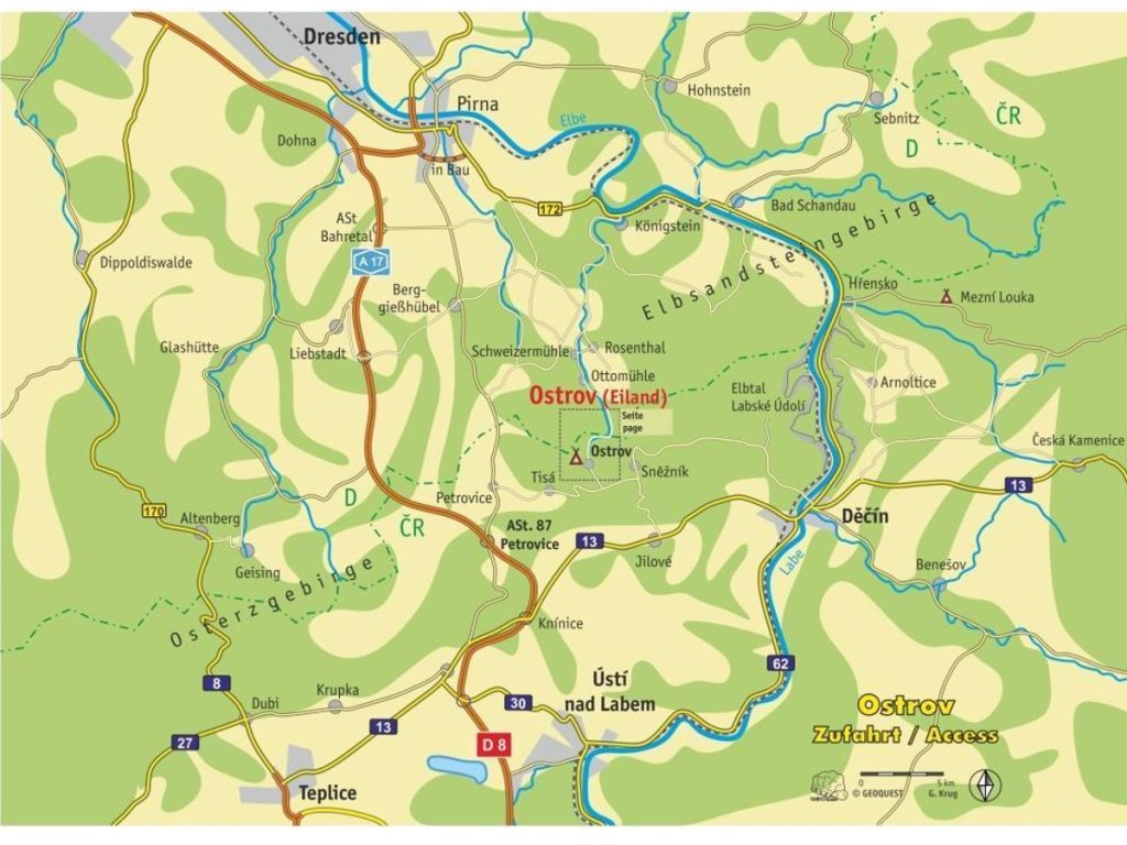 Průvodce na Ostrov dlouho chyběl. Až v roce 2021 vydalo německé vydavatelství Geo Quest krásnou bichli o 560 stranách, kde najdeš přesně 400 věží, 3800 cest a 750 toposchémat nakreslených do fotografií a to včetně umístění kruhů a možností, kde založit smyčky. Každá věž je opatřena pro snažší orientaci GPS souřadnicí. Celý průvodce je v němčině a angličtině, názvy věží je uveden i v češtině. Obtížnost je někde ponechána původní, u některých cest je překlasifikována do saské stupnice.