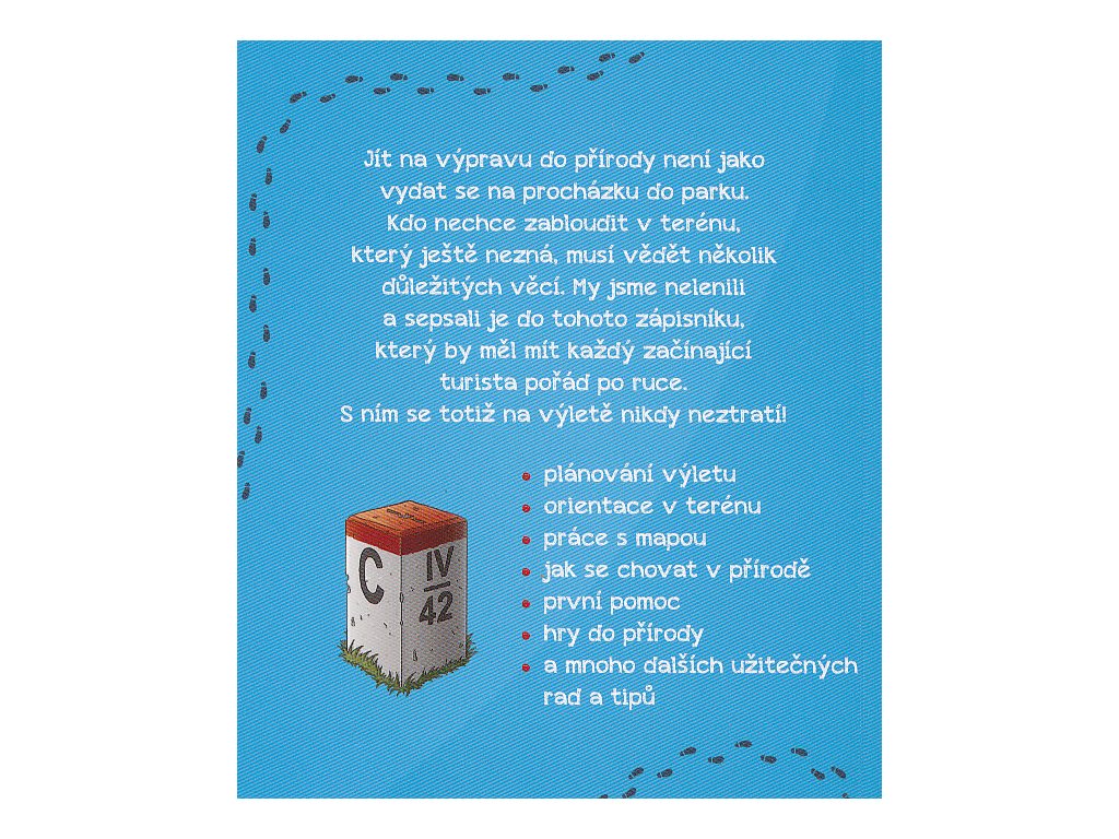 Jít na výpravu do přírody není jako vydat se na procházku do parku. Kdo nechce zabloudit v terénu, který ještě nezná, musí vědět několik důležitých věcí. My jsme nelenili a sepsali je do tohoto zápisníku, který by měl mít každý začínající turista pořád po ruce. S ním se totiž na výletě nikdy neztratí! * plánování výletu * orientace v terénu * práce s mapou * jak se chovat v přírodě * první pomoc * hry do přírody * a mnoho dalších užitečných rad a tipů Autor: Milan Pohl Ilustrace: Štěpán Drašťák Brožovaná vazba, formát 105x150 mm, 88 stran. Vydalo nakladatelství Fragment v roce 2017.