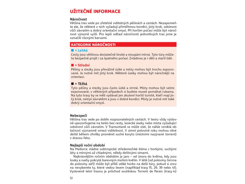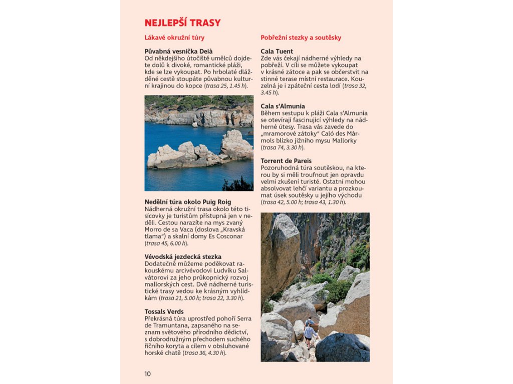 Autor Rolf Götz miluje spojení aktivní dovolené s odpočinkem na pláži a Mallorca je pro takové cestování jako stvořená. Götz vás nejprve seznámí s ostrovem a podělí se o užitečné turistické tipy a rady. Díky následujícím 80 trasám prochodíte celou Mallorku. Všechny popisy tras zahrnují informace o možnostech ubytování a občerstvení, upozornění na případné překážky a také tipy, jak se na danou túru co nejlépe připravit. Trasy jsou pro přehlednost rozděleny dle náročnosti do tří barevných kategorií (modrá, červená, černá) dle délky, převýšení a nároků na fyzickou kondici či orientační smysl.