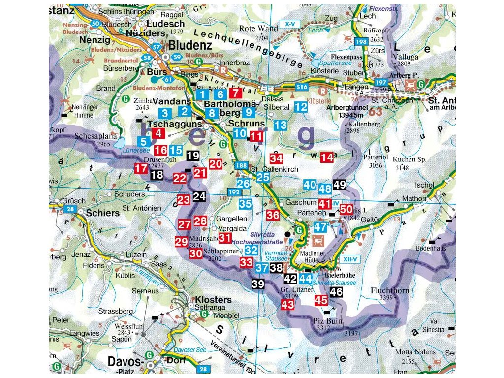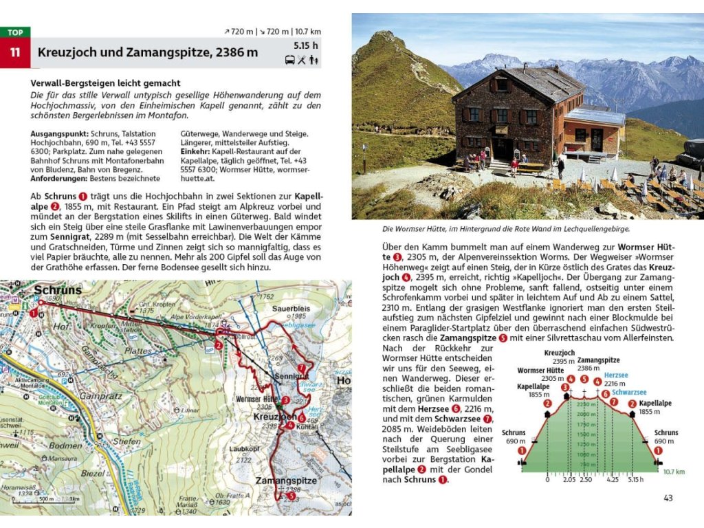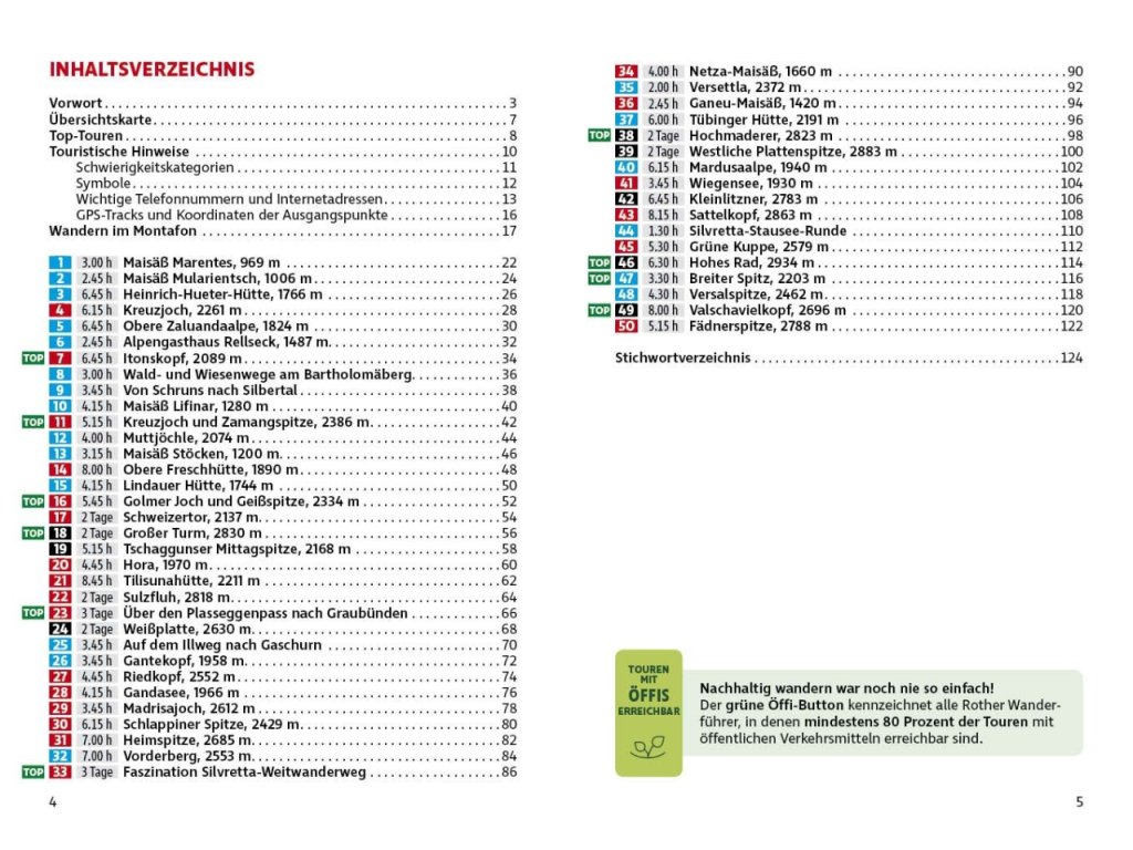 Průvodce známé edice Rother, je zaměřen na pěší výlety a túry. Nabízí popis 50 tras od lehkých procházek po náročné výšlapy, a to na území jižně od rakouského města Bludenz (Vorarlbersko). Každý z výletů je doplněn o přehlednou mapku (1:50 000/1:75 000), itinerář, popis obtížnosti, odhadovanou délku pochodu a tipy na místa, co stojí za navštívení. Úvodní kapitola vás seznámí s přírodou oblasti, upozorní na největší zajímavosti a poskytne několik turistických rad. Průvodce je doplněn o barevné fotografie. Brožovaná vazba, kapesní formát 115x165 mm, 126 stran. Vydání 2025.