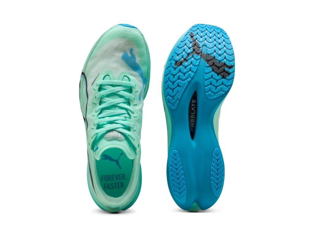 Lehkost, hbitost a rychlost. To vše se snoubí v této karbonové závodce. Již při nazouvání vás jistě zaujme zmiňovaná lehkost boty. Materiálu není použito tolik, za to je ale velmi spolehlivý. ULTRAWEAVE je extrémně lehký a vysoce pevný jednovrstvý materiál vyztužený páskou PWRTAPE pro zvýšení odolnosti a pevnosti. Pod chodidlem je špičková pěna NITROFOAM ELITE, na kterou se můžete spolehnout pro špičkovou odezvu. K maximální rychlosti pomáhá také deska z uhlíkových vláken PWRPLATE. Ta je prodloužená až pod špičku proto, aby zlepšila možnost odrazu. Trakci na všech površích zajišťuje osvědčená odolná pryžová směs PUMAGRIP.