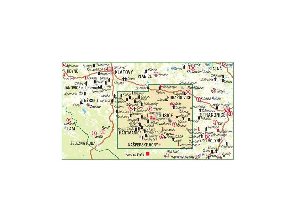 Kvalitní turistická a cykloturistická mapa v měřítku 1:25 000. Hartmanice - Horažďovice - Kašperské Hory - Nalžovské Hory - Sušice - Velhartice