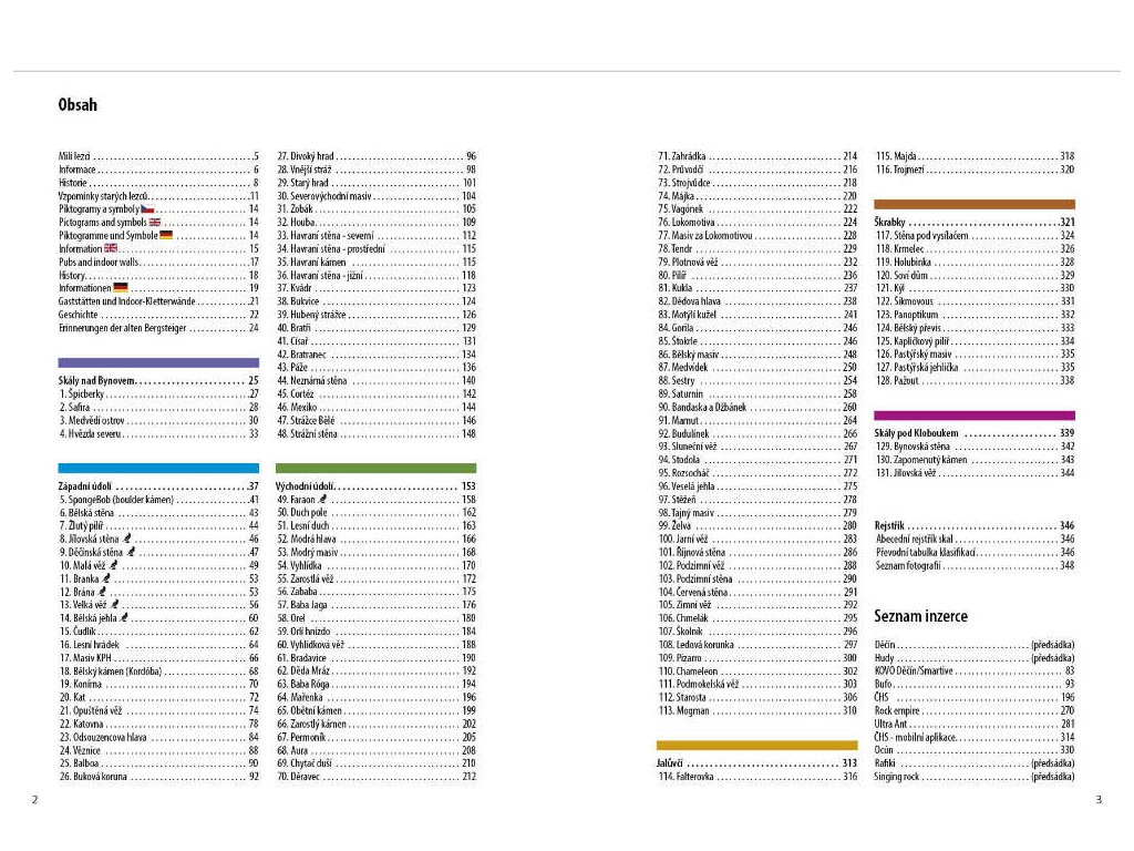 Informační historická část je v češtině, němčině a angličtině s řadou unikátních dobových lezeckých fotek. Trojjazyčně jsou také oddíly praktických informací o možnostech parkování, spaní a stravování. Dá se říct, že tento průvodce zase o něco posunul laťku tvorby horolezeckých průvodců v Čechách. Cílí nejen na české čtenáře, protože topa jsou univerzální a cesty podle nich najde každý bez ohledu na to jakou řečí mluví.